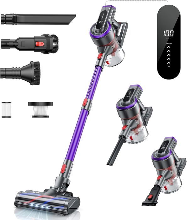 L'aspirateur est équipé d'une brosse rotative anti-enchevêtrement innovante, réduisant jusqu'à 80% l'accumulation de poils d'animaux et cheveux sur le rouleau. La filtration multicouche capture 99,9 % de la poussière et des allergènes, assurant un air purifié et un environnement de vie plus sain. Changez facilement entre les modes d'aspiration (Faible, Moyenne, Haute) d'un simple toucher, pour répondre à tous vos besoins. 【Technologie Anti-enchevêtrement】Dites adieu aux poils coincés ! Linkifly XT1 Aspirateur Balai sans Fil, 48 Kpa et 70 Min 【Système de Filtration Cyclonique Multi-cônes Avancé】Le système de filtration cyclonique multi-cônes garantit une aspiration puissante et constante, tout en maintenant un intérieur plus propre et sain. 【Autonomie Jusqu'à 70 Minutes】Avec sa batterie haute capacité amovible, cet aspirateur offre jusqu'à 70 minutes de nettoyage continu sur une seule charge. Aspirateur balai sans fil EZICLEAN Cycloboost FR8 Wash - 19 Kpa - 78dB - Fabriqué en France... La liberté du sans-fil vous permet de nettoyer partout sans limites. Cet aspirateur sans fil, équipé d'un moteur brushless haute performance de 550 W, soulève sans effort saletés, poussières et débris des tapis, parquets et toutes surfaces, laissant votre maison impeccable et fraîche. Parfait pour les familles avec animaux ou personnes allergiques. Autonomie Longue 70min CHEBIO 550W/45000Pa Aspirateur Balai Sans Fil, 70 Mins Aspirateur Sans Fil Puissant Avec LED Aspirateur XT1 48kPa 70min Autonomie Aspirateur Balai Sans Fil Conga Rockstar 8500 Infinity Ergowet Animal Turbo 4 En 1 680 W 30 Kpa... 【Design Autoportant pour une Praticité Maximale】Plus besoin de le poser contre un mur ou de chercher un rangement : cet aspirateur tient debout seul !
