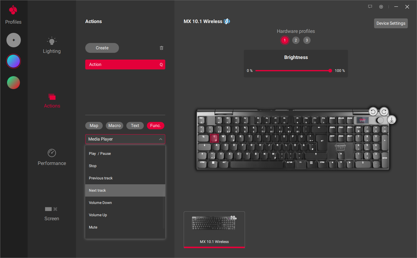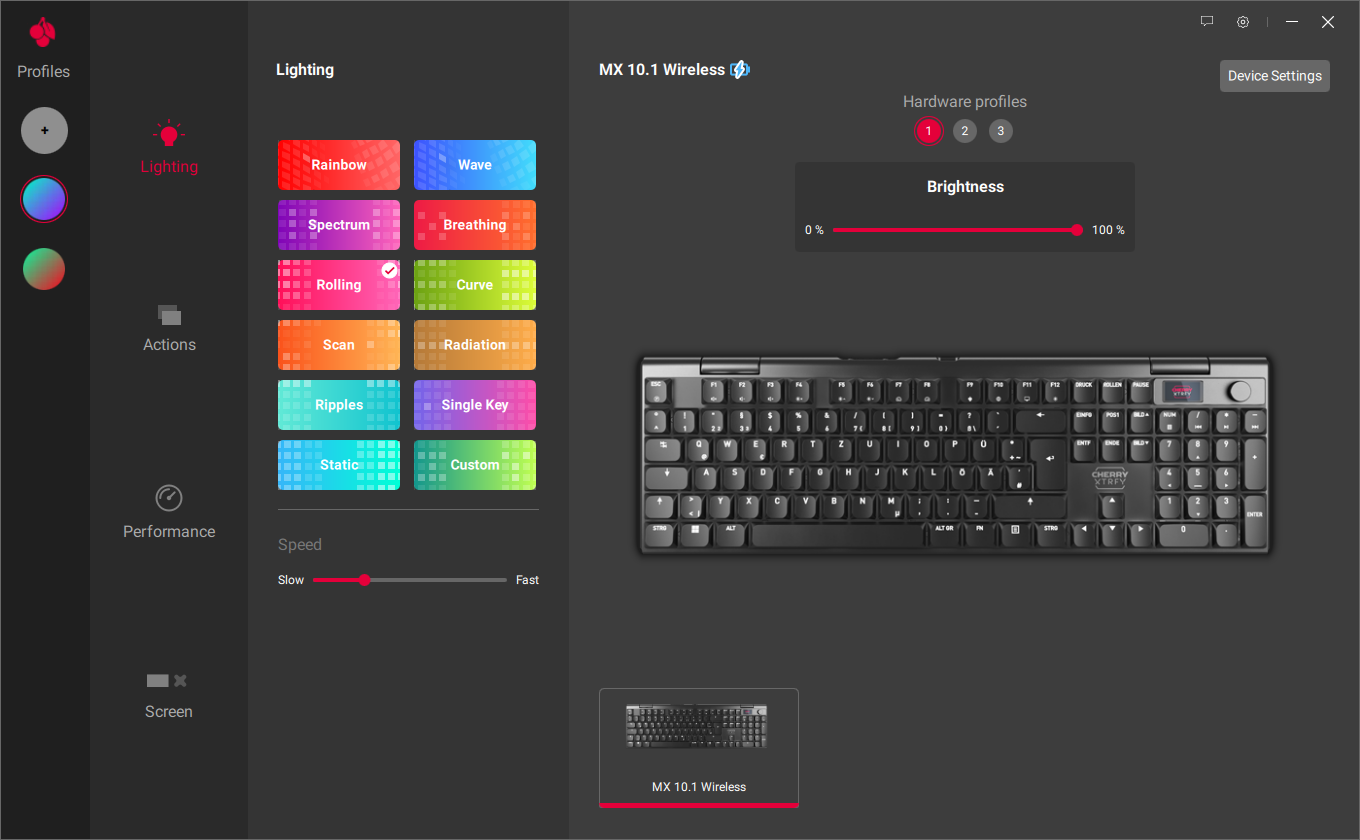 Akko 5075B Plus Mechanical Keyboard, Clavier de Jeu sans Fil 3 Modes 75 Le bouton rotatif pratique et le petit écran LCD te donnent le contrôle ultime et te permettent de personnaliser ton expérience de jeu à ton goût. Triple Mode 2.4 GHz Bluetooth USB CHERRY MX 10.0N RGB, Clavier De Gaming Mécanique Plat, Disposition UK (QWERTY), Filaire, Original CHERRY MX LOW PROFILE RGB SPEED Switches, Noir Clavier Bluetooth Équipé d'une connexion triple mode ultra-rapide, de switches CHERRY MX LOW PROFILE 2., 0 originaux et de capuchons de touches PBT résistants à l'abrasion, ce clavier plat allie habilement confort et durabilité. Clavier mécanique Cherry XTRFY MX 3.1 - Test complet - laktu Extrêmement rapide, super polyvalent et durable : le XTRFY MX 10.1 Wireless est le nec plus ultra des claviers de gaming Low-Profile. Avec son taux d'interrogation remarquable, sa connexion triple mode, ses commutateurs MX LOW PROFILE 2.0 et son design élégant en aluminium, il est le mélange parfait de vitesse, de... L'écran affiche tes paramètres et l'état de la batterie (y compris 3 profils personnels) Clavier de jeu plat et sans fil : doté d'un boîtier en aluminium robuste pour une durabilité extrême et d'un design fin pour plus de confort lors des longues sessions de jeu Bouton rotatif pratique : ajuste l'éclairage RGB, accède aux commandes multimédia ou passe facilement d'un appareil Bluetooth à l'autre Ingénierie allemande et design suédois, unis par la passion du jeu. Ultra-rapide : fréquence d'interrogation de 4000 Hz en mode sans fil et même de 8000 Hz en mode filaire. Avec une réputation construite au fil des décennies, CHERRY est synonyme de produits de qualité conçus en Allemagne et s'adressant à tous ceux qui ont des exigences élevées en matière de performance, de design, de durée de vie et de fonctionnalité de leurs périphériques de saisie.