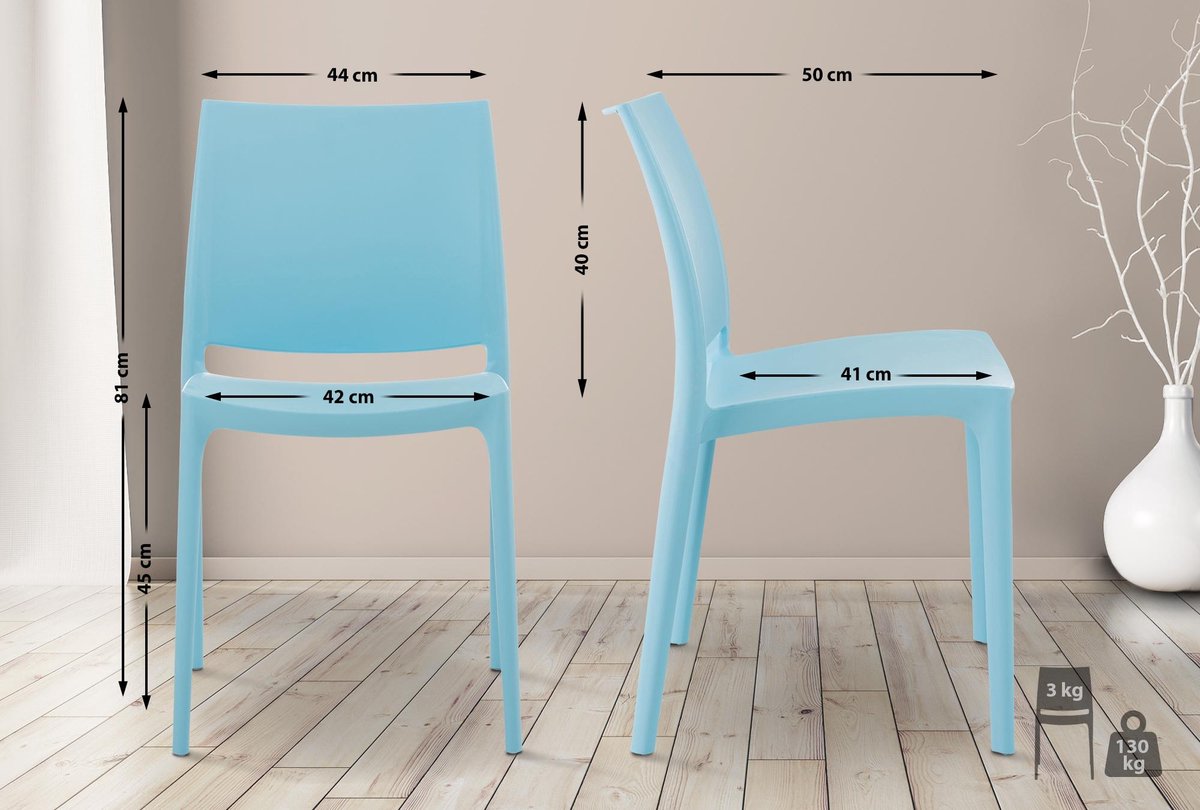 Même une exposition fréquente et intensive au soleil ne fait pas jaunir ou pâlir le plastique. Dimensions:Hauteur totale : 81 cmLargeur totale : 44 cmProfondeur totale : 50 cmHauteur d'assise : 45 cmMax. Les chaises en plastique sont résistantes aux intempéries et peuvent être utilisées sans problème dans le jardin et sur le balcon. Les chaises sont résistantes aux UV et à l'eau. Lot de 4 Chaises de Salle à Manger en Plastique sans Accoudoirs La profondeur de la couleur des chaises est ainsi conservée longtemps. Utilisez-la comme siège pour la salle de fête ou comme accroche-regard original dans votre salon, votre jardin ou lors de salons. Lot 2 chaises de jardin empilables en plastique Vert MAYA | Maisons du... Ce modèle est disponible en différentes couleurs : crème, noir, blanc, orange, bleu clair, gris clair, gris foncé, vert ou olive. Set de 4 chaises MayaUn look tendance et une large palette de couleurs, voilà ce qui caractérise le set de chaises Maya. Les chaises de jardin Maya sont adaptées à l'intérieur et à l'extérieur. Sièges De Jardin CLP Lot De 4 Chaises De Visiteur Empilables Ken En Similicuir I Chaises Lot 4 Chaises Bleu Clair La profondeur de la couleur des chaises est ainsi conservée longtemps. Lorsqu'elle n'est pas utilisée, la chaise Maya peut être empilée et rangée de manière pratique Les chaises inclinables empilables peuvent être stockées de manière peu encombrante et sont très stables et résistantes grâce à l'utilisation de matériaux de haute qualité (capacité de charge : 130 kg).