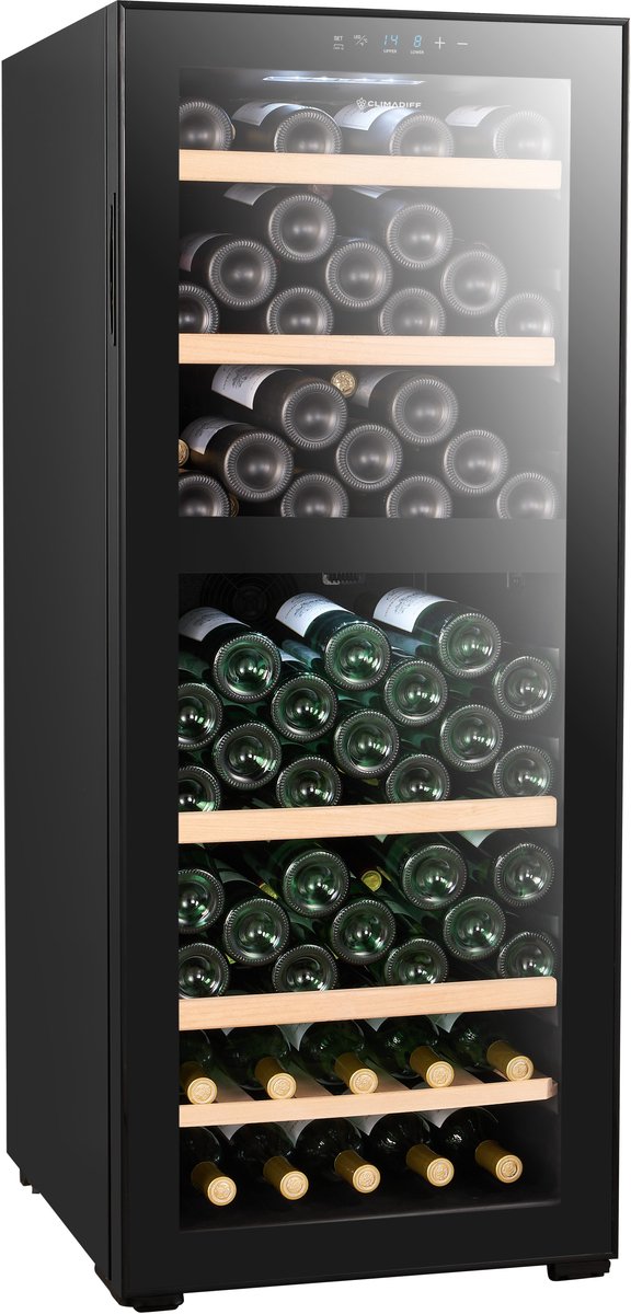 Ancien Modèle : Cave à Vin Mono-température De Vieillissement Ou De Service Climadiff Art361676 5 clayettes coulissantes en acier avec façade bois élégante. Climadiff CEPAGE108 Température Réglable CLV254MF Climadiff Cave à Vin Pose-libre - Elektro Rangement Bouteilles Vin Noir Température réglable avec précision entre 5 et 20°C. L'un des grands avantages de la cave à vin Climadiff CEPAGE108DZ est sa double zone de température indépendante. Vous pouvez ainsi conserver vos vins à des températures idéales en fonction de leur type Cave a vin Climadiff CS105B1 105 bouteilles-porte vitree- eclairage led... Fonctionnement silencieux : seulement 38 dB. Panneau de commande digital pour un réglage simple et rapide. Installation en pose libre – dimensions : 49,5 x 59,6 x 121,6 cm. Capacité généreuse de 108 bouteilles pour tous vos vins préférés. Compatible avec l’application Vinotag pour un suivi connecté. CEPAGE108 : Performante et élégante Cave à vin Climadiff CEPAGE108 : 108 bouteilles, température réglable 5-20°C, clayettes en fil d'acier avec fronton bois, LED, compatible Vinotag.