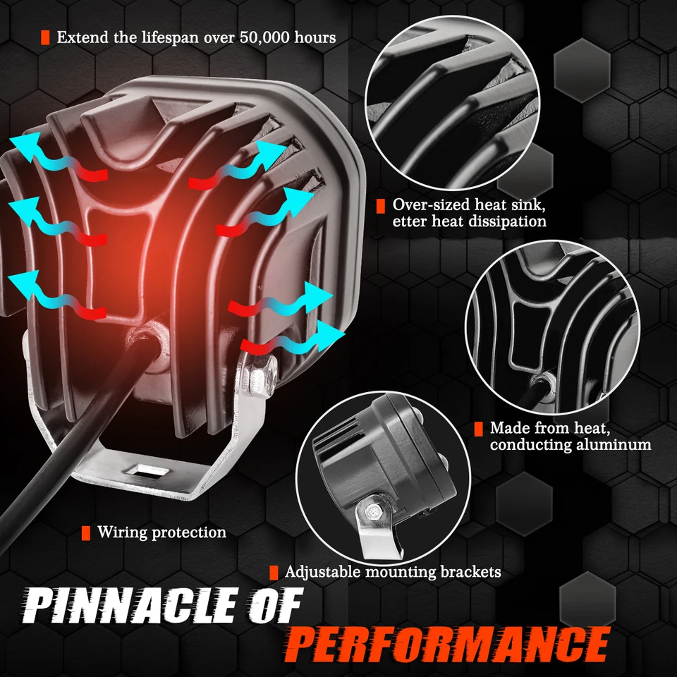 Luminosité Inégalée : Avec une puissance de 90W et une sortie lumineuse de 30 000 LM, nos feux de brouillard moto surpassent la concurrence Phare LED pour voiture et moto de 7 pouces, avec DRL/clignotant/feux de 🚀 Compatibilité Large pour Tous Vos Véhicules : Que vous conduisiez une moto de route, une moto trail, un quad ou un SUV, ces Feux Additionnels Moto LED s’installent facilement et assurent un éclairage fiable. Un simple bouton vous permet de changer de mode et de toujours choisir le meilleur éclairage pour la situation Feux LED Camion Quad ATV 9 Modes CO LIGHT 3 Pouces LED Lampe De Travail 16000LM Spot Antibrouillard Lampe De Conduite 3500K 6500K IP68 LED Tout-terrain étanche Pour Camion SUV 4WD ATV Bateau Phares Moto Tout-terrain Puissants LED 3.5 Pouces Conçus pour s’adapter à la plupart des motos, quads, ATV, UTV ou SUV, ils se fixent facilement sur la fourche, le garde-boue, le pare-chocs ou le cadre, vous permettant de personnaliser l’angle et la portée de votre éclairage moto tout-terrain 🌦 Polyvalence Totale pour Affronter Tous les Temps : Avec 9 modes d’éclairage, y compris faisceau bas, faisceau haut, halo ambré et mode flash, ces Feux Additionnels Moto LED s’adaptent instantanément à toutes les conditions. Le filtre jaune inclus est parfait pour transformer vos feux en feux antibrouillard moto, offrant une visibilité optimale sous la pluie ou dans le brouillard. Que vous rouliez sur une autoroute de nuit ou sur un chemin forestier isolé, cet éclairage longue portée moto perce l’obscurité et éclaire chaque détail avec une clarté exceptionnelle, réduisant la fatigue visuelle et augmentant votre sécurité
