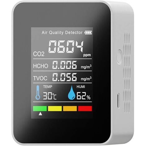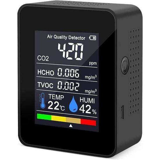 Il peut afficher la température ambiante, l'humidité et l'horloge en même temps, et régler l'alarme sonore. Il détermine le niveau de qualité de l'air de votre environnement de vie ou de travail. 【Étalonnage manuel automatique】 Cet outil propose deux modèles d'étalonnage, l'étalonnage manuel et l'étalonnage automatique. Liste de colisage:1 * unité principale1 * câble de charge1 * Manuel d'utilisationPourquoi choisir nos produits :1., Qualité ---- Un processus de contrôle de qualité strict pour chacun de nos produits est une condition préalable à la garantie de santé et de confort., 2., Si vous avez des questions sur nos produits, n'hésitez pas à nous contacter, nous travaillerons avec vous pour résoudre tous les problèmes que vous rencontrez jusqu'à ce que vous soyez satisfait. DéTecteur D'Air CO2 5 en 1 Multi-Fonctionnel Portable NuméRique TempéRature et Humidité Fonction ② Avec la batterie au lithium rechargeable intégrée (3000mAh), le moniteur de qualité de l'air peut fonctionner pendant 3 -5 heures en continu, cet appareil facile à transporter peut aider à surveiller la qualité de l'air à la maison, dans la voiture et dans les chambres d'hôtel. Ne pas utiliser à proximité d'une température élevée/d'une humidité élevée ou d'un champ magnétique puissant. Pour détecteur de CO2 portatif 3 en 1 avec moniteur de température et d'humidité, compteur de qualité de l'air intérieur avec écran LCD double ligne... Prenez le contrôle de la santé de votre famille - surveillez votre air aujourd'hui. Surveillance multifonctionnelle 4 en 1 :CO2, température, humidité, fonction d'alarme de CO2Note gentille:Lors de la lecture de la valeur, veuillez ne pas déplacer fréquemment le détecteur de qualité de l'air, sinon les données fluctuent considérablement et sont instables. Il est généralement utilisé là où le CO2 est généré à des niveaux élevés, écoles, serres, bureaux, usines, hôpitaux, hôtels, fermes d'élevage et autres lieux Quality In Your Home Détecteur De CO2 Portable - Qualité Air - Alarme Couleur/Son Appareil Mesure CO2 Maison Bureau Voiture Moniteur de Qualité de L'air, Portable Haute Précision HCHO TVOC CO2... 【Indice de qualité de l'air professionnel】 Nous vous facilitons la tâche avec un manuel d'utilisation pour une compréhension facile et un support client complet.