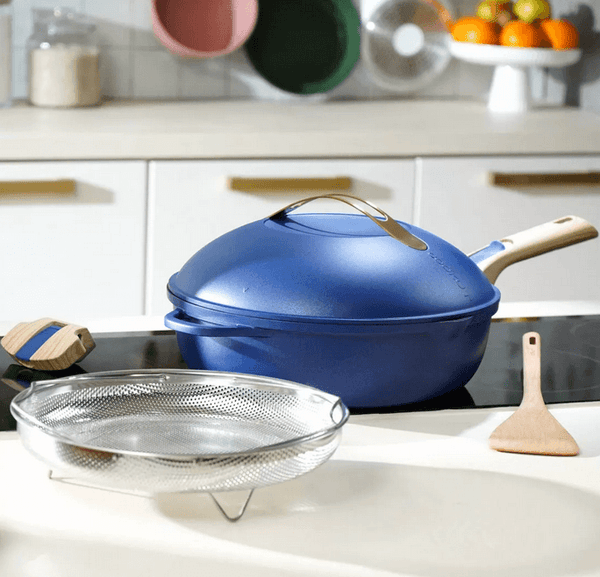 LA FABULEUSE POÊLE 8 EN 1 MERINGUE - COOKUT Ustensile De Cuisine Tous Feux COOKUT - La Fabuleuse Poêle 8 En 1 – Un Seul Ustensile Qui Replace Casserole Sauteuse Cocotte Vapeur Corps en métal 100% recyclé* · Revêtement anti-adhérent haute performance · Légère : 1,8 kg · Poignées détachables · Couvercle avec système d'auto-arrosage des... 8 EN 1 : Un seul ustensile remplace poêle, casserole, sauteuse, cocotte, cuiseur vapeur, friteuse, plat au four, moule à gâteau COOKUT - La Fabuleuse poêle 8 en 1 – Un seul ustensile qui replace... Capacité de 3,4 litres - 24 cm REVETEMENT HAUTE PERFORMANCE : antiadhésif durant des années, robuste et sain (sans PFOA) - PRATIQUE : la poignée du couvercle reste froide, le revêtement est antiadhésif et le couvercle est recouvert de picots intérieurs pour l’auto-arrosage des viandes