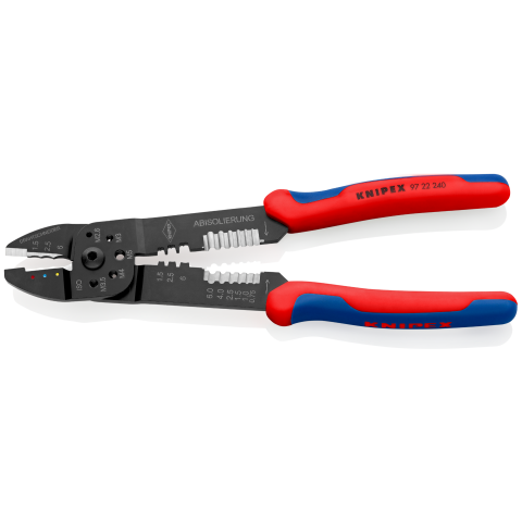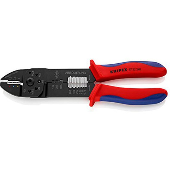 Knipex Pince à sertir - acheter sur Marque : KNIPEX. 4,6 4,6 étoile(s) sur 5 (142). KNIPEX Tools 97 22 240 9722240 Outil à main. KNIPEX Tools 97 22 240 9722240 Outil à main. Afficher le contenu... Knipex Pince ASSORT COSSES + PINCE A SERTIR 9722240 | Outillage Et Matériaux Accessoire électricien Professionnel Pince à sertir avec gaines bi-matière noire laquée 240 mm KNIPEX | 97 22 240 · Pour couper et dénuder les câbles et pour sertir les cosses et les connecteurs... Pays de fabrication : Taïwan., Fabricant : Knipex capacité 18 à 10 AWG, type de câble solide et tordu, outil standard (accessoire nécessaire pour la fixation), fonctions bande/sertir, manuel réglable, poignée de type coussin, caractéristiques des trous filetés pour couper des vis en cuivre et laiton filetées M2., 6, M3, M3., 5, M4 et M5, sertir avec 3 positions pour isolé et non isolé, MPN : 97 22 240