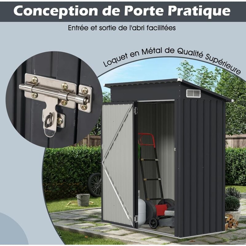 COSTWAY Abri de Jardin en Métal Galvanisé 2,78 m2 196 x 142 x 186cm-Portes Coulissantes,Rampe-4 【2 Entrées】Doté d'une grande porte avec une serrure et 2 clés et d'une porte avec loquet, cet abri de jardin métal assure 2 accès faciles et une sécurité renforcée. Abri De Jardin COSTWAY Extérieur 6.2 M³ Avec Porte Verrouillable, PVC 3.1㎡ Avec 2 Fenêtres, Toit En Pente, Cadre En Acier, Rampe Pour Vélos, Outils, Cabane Pour Jardin, Terrasse, Patio Remise Jardin 2.6m² 5.7m³ Idéal pour les jours de pluie, il est à la fois coupe-vent et imperméable pour protéger vos objets de valeur. 2 Entrées]Doté d'une grande porte avec une serrure et 2 clés et d'une porte avec loquet, cet abri de jardin métal assure 2 accès faciles et une sécurité renforcée Abri De Jardin En Métal 4㎡, Cabane Jardin Exterieur En Acier Galvanisé... 【Détails et Dimensions】Avec des serrures et des clés de sécurité, une poignée pratique et des fenêtres, cette remise est soigneusement conçue pour la commodité de l'utilisateur. 【Utilisation Large】Cet espace de rangement extérieur peut se transformer sans effort en abri à outils, buanderie, poubelle ou abri pour animaux de compagnie. Les dimensions hors tout sont : 235 x 117 x 185 cm (L x l x H). 【Conception avec Toit Incliné】Le toit incliné supérieur de cet abri de jardin toutes saisons assure un ruissellement rapide des eaux de pluie, empêchant l'accumulation et maintenant un intérieur sec. Il répond à diverses exigences de stockage dans votre jardin, votre ferme ou votre cour. Il répondra à divers besoins de stockage dans votre cour ou jardin.