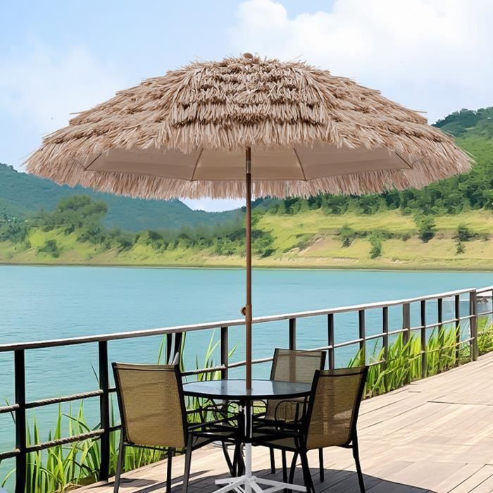 Caractéristiques : Ajoutez une touche tropicale et un style hawaïen à vos espaces extérieurs Fabriqué en chaume PP, protecteur solaire, imperméable, résistant à la décoloration et au vieillissement Conçu avec une ventilation sur le dessus pour une circulation d'air et une stabilité améliorée Facile à ouvrir et à fermer le parasol en déplaçant la poignée vers le haut et vers le bas Présente un design en 2 sections, facile à installer, pratique à transporter Soutenu par des baleines métalliques robustes et un poteau en métal épaissi, stable et sûr Équipé de poches de baleines de protection, évite que la toile ne se déchire Spécifications : Couleur : Naturel + Noir Matériau : Chaume PP, Tissu Polyester, Métal Dimensions du Produit : 283 x 245 cm (Dia. 【Style Hawaïen Charmant】Ce parasol tiki en chaume de 283 cm est fabriqué en chaume PP de qualité supérieure, offrant une protection solaire supérieure et une durabilité contre la décoloration et le vieillissement. 【Toit Aéré à Double Niveau】Ce parasol déporté de style hawaïen est équipé d'une ventilation sur le dessus pour favoriser la circulation de l'air et réduire les contraintes dues au vent. La stabilité est renforcée par son toit à double ventilation, qui favorise la circulation de l'air et réduit la pression du vent, couplé à une structure métallique à baleines solides qui résiste bien aux éléments. Parasol de Jardin 350 cm, UV30+, Parasol d’Extérieur, Parasol de x H) Hauteur du Rebord du Parasol : 200 cm Taille Pliée : 90 x 90 x 230 cm (L x l x H) Poids Net : 13 kg Contenu de l'emballage : 1 x Parasol Déporté de Patio 1 x Manuel d'Utilisation Équipé d'une poignée facile à utiliser, ce parasol s'ouvre et se ferme en douceur avec une simple poussée ou traction, et peut être démonté en 2 sections pour un rangement facile lorsqu'il n'est pas utilisé. COSTWAY Parasol de Plage Hawaii en Chaume 175 x H 194 cm 5 Couches 8... Il comprend un crochet supplémentaire pour fixer solidement la toile au cadre et est livré avec une base croisée robuste nécessitant des sacs de sable ou une base lestée pour la fixation (non inclus). Il est fabriqué à partir d'une toile en chaume PP qui offre une protection exceptionnelle contre le soleil et la pluie légère, assurant des performances à long terme (Remarque : Veuillez replier votre parasol en cas de météo sévère). Lorsqu'il n'est pas utilisé, il peut être démonté en 2 sections, rendant le stockage facile. Parasol Jardin 283 Cm COSTWAY Parasol Déporté Inclinable De Jardin Dia.270CM Avec Toile Inclinable 3x3m Grande Zone d’Ombrage et Conception Inclinable]Le parasol déporté éclairé mesure 300 x 250 cm (diamètre x hauteur) et offre une généreuse zone d'ombrage de 7 m², pour une couverture suffisante lors de vos activités de plein air 【Structure Fiable et Stable】Construit avec des baleines métalliques renforcées et une structure triangulaire stable, le parasol suspendu assure longévité et résilience.