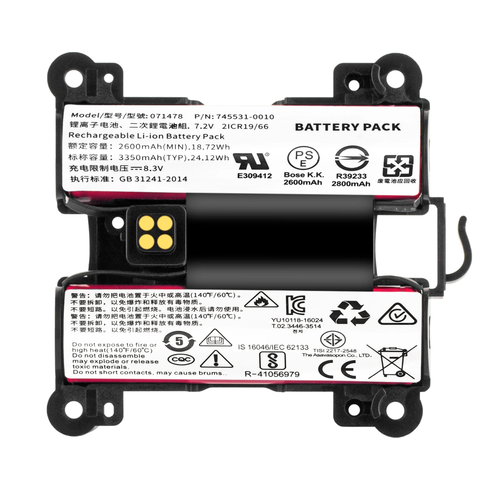 41% sur le Haut-parleur Bose SoundLink Revolve+ (Series II) | Nos Recos Aazon.co: CBQ 2600Ah 071478 Batería de repuesto para Bose Soundlink... Batterie Protégée Surchauffe 071478 Battery CS Replacement Battery For Bose Soundlink Revolve+ Speakers - 071478 Compatible Revolve Plus Replacement Batterie Bose Soundlink Revolve Batterie pour enceinte Bluetooth Bose Soundlink Revolve+ Remplace les modèles Bose 071478, 078068, 071475, 739617-1110, 858366-1110, 858366-1310, etc. Remplace les modèles Bose 071478, 078068, 071475, 739617-1110, 858366-1110, 858366-1310, etc. Bose 745531-0010 battery for Bose Soundlink Revolve Plus 2 II 071478... Appareils compatibles : batterie pour haut-parleur Bluetooth Bose Soundlink Revolve+. Longue durée de vie et haute capacité : cellules lithium-ion pour une plus grande densité d'énergie, plus de puissance, une durée de vie plus longue et une durée de vie prolongée. Protection intégrée contre la surchauffe, la surintensité et la surtension pour la batterie et les haut-parleurs. Testé selon FCC, UL, CE, RoHS.