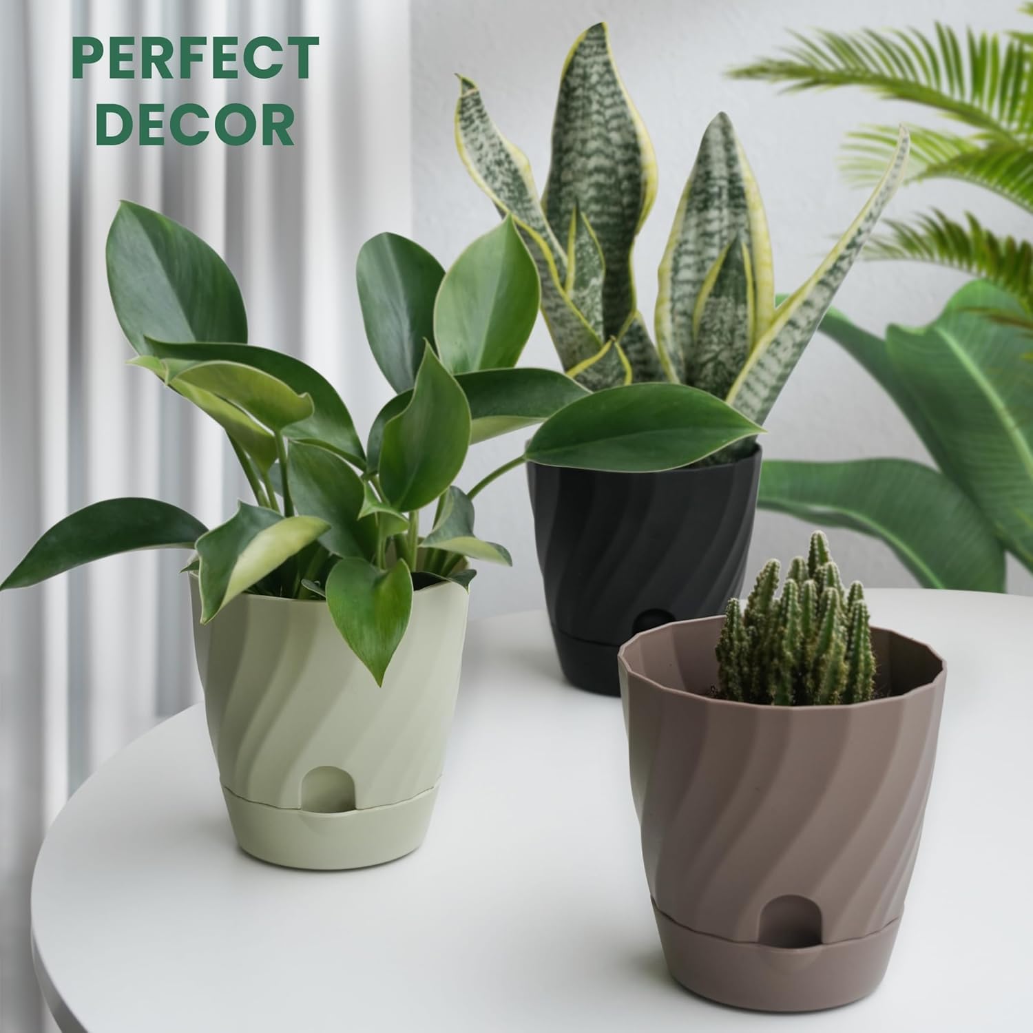 Le pot et le réservoir se verrouillent solidement, évitant la séparation lors du déplacement. Pot Drainage Aéré Soucoupe Amovible CSYY Lot De 7 Pots De Fleurs En Plastique à Arrosage Automatique Avec Plateau De Trous De Drainage Pour Intérieur Et Jardin (vert Lot 6 Pots Plantes Réservoir Eau Lot de 6 Plastique Auto-Arrosant Xiumeso 5pcs Pots de Fleurs en Plastique Auto-arrosant, 15,2 x 11 cm... 【Matériau Écologique】Ce pot plastique plante est fabriqué en plastique recyclable épais et de haute qualité (paroi latérale de 4 mm d'épaisseur). Le pot est solide, protège les racines, et est léger pour un déplacement facile. Pot De Fleur Suspendu Auto-Arrosant Jardinière En Plastique Créative... 【Système D'arrosage Automatique】Ce pot avec réserve d'eau intègre un réservoir efficace à la base de chaque pot, capable de stocker une grande quantité d'eau (jusqu'à 260 ml), satisfaisant les besoins de la plante pendant une semaine ou plus. 【Répond Tous Besoins Plantes】Ce pot de fleurs est proposé en lot de 6 unités d'une taille de 6 pouces, parfait pour la majorité des plantes d'intérieur et de bureau de petite et moyenne taille. Son aspect mat moderne et son design minimaliste s'harmonisent avec tous les styles de décoration SUN-E Lot de 7 pots de fleurs à arrosage automatique - Pour toutes les plantes d'intérieur - En plastique vert - Avec trou de drainage - Idée cadeau C'est un cadeau idéal et attentionné pour les amateurs de plantes 【Soucoupe Amovible】Ce pot auto arrosant est équipé d'une large soucoupe à clipser qui retient l'excès d'eau.