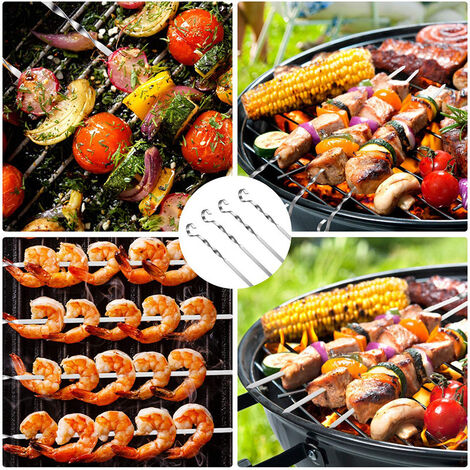 Un must have pour les barbecues en plein air et un cadeau idéal pour les amateurs de barbecue pour l'hôtellerie d'une réunion en famille et entre amis. Elles sont idéales pour les kebabs, les crevettes, les légumes, les fruits et bien plus encore. Avec 40 brochettes en acier inoxydable (35 cm de longueur) et deux brosses, vous maîtrisez chaque saison de barbecue, que ce soit pour une fête de famille, une fête dans le jardin ou des aventures en camping. Nettoyage facile : les brochettes en acier inoxydable passent au lave-vaisselle – Ne pénètrent pas d'huile, pas de formation d'odeurs. Faites griller de délicieuses brochettes facilement et avec plaisir. Les brochettes en acier inoxydable peuvent être réutilisées de nombreuses fois. Brochettes en acier inoxydable de qualité supérieure : fabriquées en acier inoxydable 304 de qualité alimentaire – Sans substances nocives, inoxydables et sans goût pour un plaisir de barbecue sain. Pourquoi les brochettes en métal sont-elles meilleures ? Pas de casse ni d'éclats : contrairement aux brochettes en bois, nos brochettes en métal résistent aux morceaux de viande lourds. Faciles à nettoyer et réutilisables, nos brochettes en acier inoxydable passent au lave-vaisselle. Ils sont secs avant de les ranger pour une utilisation durable. Cadeau de qualité pour vos proches Voir plus de détails Vous avez des questions à propos des informations du produit en français? Contactez-nous Signaler un problème avec ce... Offrez à votre famille et à vos amis un temps de barbecue encore plus agréable. Lorsque vous essayez de les tourner et de les cuire uniformément, mieux que les brochettes rondes. Brochettes professionnelles MOERDIFFER pour des résultats de barbecue parfaits. Piques Brochettes Rairsky Lot De 50 Brochettes à Kebab En Métal De 20 Cm Pour Barbecue, Brochettes En Métal Pour Friteuse à Air, Rouleaux De Viande Réutilisables En Acier Inoxydable, Pour Viande Les brochettes en métal de 2,0 mm d'épaisseur ne se cassent pas comme le bambou, faciles à tenir, empêchent efficacement les mains de se brûler. Design plat : les aliments tournent ou roulent pendant le barbecue. Avec la broche, vous pouvez facilement préparer de délicieux plats de barbecue et impressionner vos invités. Laver à l'eau avant et après utilisation, sécher avec un chiffon et assurer un environnement de stockage sec. Les longues brochettes gardent vos mains loin de la source de chaleur. Contenu : 8 brochettes de 45 cm. 4 brochettes de 40,2 cm. 12 embouts en caoutchouc. 1 pochette de rangement pratique. 2 brosses en silicone. Brief content... Inox 304 Qualité Alimentaire Réutilisable CTDMJ Lot De 40 Brochettes En Acier Inoxydable Pour Barbecue Brochettes Barbecue Acier Inoxydable 35 Cm Résistantes à la chaleur (jusqu'à 500 °C) et réutilisables pendant des années. Parfait pour l'extérieur et le camping : les brochettes de 35 cm de long sont idéales pour les barbecues, les fêtes d'anniversaire, les mariages, les barbecues, la viande, les légumes ou les guimauves autour du feu de camp – Pas de trempage nécessaire – Idéal pour les barbecues pour enfants. Solution durable – Réutilisable pour réduire les déchets et économiser de l'argent.