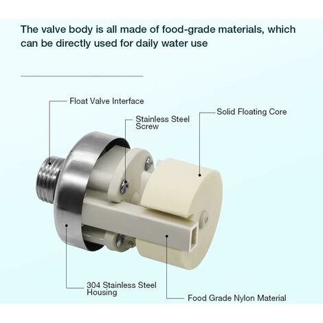 Fonctionnement sans électricité : fonctionne sans électricité, fournissant une solution pour une gestion efficace des ressources en eau. Contrôle Remplissage Réservoir ROBINET DE CUISINE Robuste En Acier Inoxydable Pour Eau Froide Vanne Niveau Eau Automatique * Design efficace : avec son faible mécanisme d'auto-réapprovisionnement, cette valve minimise le gaspillage d'eau en arrêtant automatiquement le débit lorsque le réservoir atteint sa pleine capacité. Pour une construction durable : fabriquée en acier inoxydable 304 de qualité alimentaire, cette valve à flotteur est conçue pour la longévité et la sécurité, offrant une excellente résistance à l'usure dans divers environnements. Fonctionnalité automatique Caractéristiques : Nom de la pièce : valve à flotteur. Matériau : acier inoxydable., Dimensions : voir photo., Couleur : argenté. Disponible en ligne 1/2 Vanne à Flotteur Entièrement Automatique En Acier Inoxydable 304, Régulateur De Niveau D'eau Automatique Pour Réservoir D'eau... * Il y a deux spécifications au choix : A : valve à flotteur en acier inoxydable 304 4 points d'entrée d'eau ; B : vanne flotteur en acier inoxydable 304 entrée d'eau de 2,5 cm. *Utilisation polyvalente : idéal pour une utilisation dans les piscines, l'aquaculture et les systèmes d'arrosage du bétail, cette valve s'adapte à plusieurs paramètres, améliorant ainsi la commodité générale. Contenu de l'emballage : 1 valve flottante., 1 ruban adhésif. Chasse D'eau Robinet Flotteur Automatique Acier Inox 304 * Fonctionnement : aucune électricité n'est nécessaire pour le fonctionnement, permettant des économies d'énergie tout en gérant efficacement les ressources en eau dans différentes applications. Construction robuste : fabriquée en acier inoxydable, cette valve est conçue pour résister à l'usure, ce qui la rend adaptée à divers environnements.
