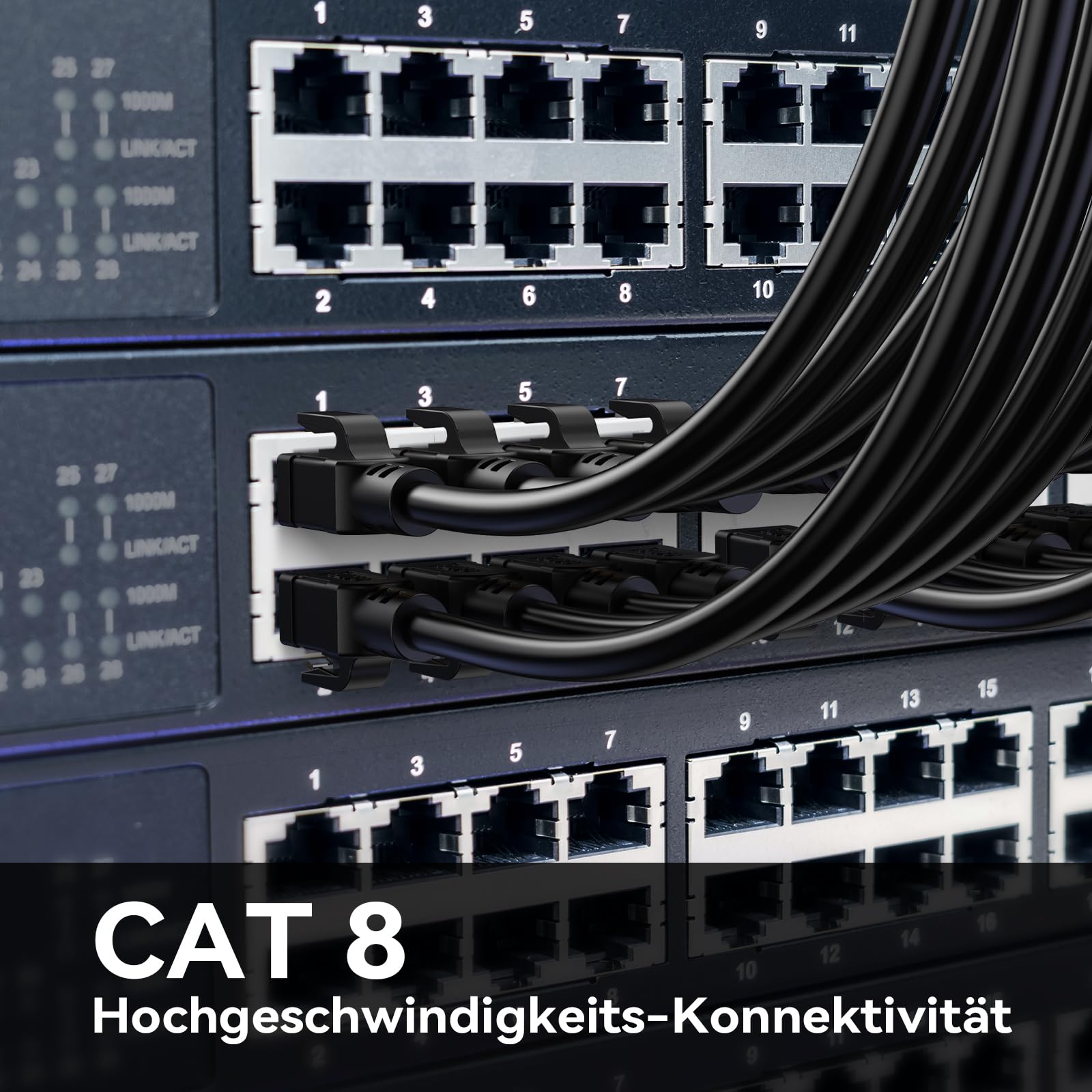 Le câble patch Cat 8 le plus économique pour les réseaux LAN rapides et évolutifs. Câble Ethernet Cat 8 - Câble réseau plat RJ45 40 Gbit/s 2000 MHz - 2 M Zwart Pourquoi choisir le câble Ethernet Cat 8 ? Avec le câble Ethernet Cat 8 vous êtes assuré d'une connexion internet rapide et fiable pour toutes vos activités, qu'il s'agisse de jouer, de travailler à domicile ou simplement de surfer sur internet Câble Ethernet 40 Gbps 2000 MHz : le câble réseau Cat 8 prend en charge un transfert de données jusqu'à 40 Gbps (4 x V. Rend la vitesse Ethernet plus rapide et plus stable. Câble Réseau 40 Gbps 15 M Cable Ethernet Cat 8 10m, 40Gbps 2000MHz Cable Reseau RJ45 Cat 8 Nylon Tressé Câble Ethernet Super Débit Câbles Ethernet Cable Internet Pour Router, Switch, Modem, Laptop, PS5/PS4, Smart TV, Xbox Câble Blindé S/FTP 2000MHz Adhésif réseau efficace : la gaine extérieure est fabriquée en PVC de haute qualité respectueux de l'environnement, résistant à l'usure et a un corps souple pour assurer celle du câble de raccordement Gigabit Cat 8., Le paquet contient plus ou moins 15 clips de câble. Vous pouvez vous connecter aux segments LAN/WAN et aux périphériques réseau pour obtenir un accès Internet à haut débit et diffuser des vidéos, de la musique et d'autres données sans vous soucier des vitesses Internet lentes. Câble de catégorie 8 - Compatibilité universelle : câble réseau Cat 8 rétrocompatible avec les câbles Internet Cat7, Cat6a, Cat6, Cat5, Cat5e. S Cat 7, 10 Gbps) et une bande passante de 2000 MHz (3 x V. Par rapport aux câbles réseau Cat7, le blindage supplémentaire et la qualité améliorée du câble LAN Cat8 offrent une meilleure protection contre la diaphonie, le bruit et les interférences. Par rapport aux câbles réseau Cat7, le blindage supplémentaire et la qualité améliorée des fils des câbles LAN Cat8 offrent une meilleure protection contre la diaphonie, le bruit et les interférences. Câble RJ45 Large compatibilité : les câbles réseau Cat 8 Gigabit conviennent non seulement aux bureaux à domicile/aux réseaux scolaires/cybercafés, mais sont également parfaits pour la communication entre les commutateurs haute vitesse dans les centres de données/salles de serveurs/réseaux d'entreprise, etc. Câble ethernet réseau prend en charge une haute débit de 25 Gbps, capacité de bande passante de 2000 MHz (comparé au câble CAT 7 avec 600 MHz).Permet vous offrir une expérience d'Internet plus fluide et plus rapide, et il répond parfaitement aux exigences futures en débit et en bande passante S/FTP 30AWG Super Speed : composé de 4 paires de câbles en cuivre torsadé blindés S/FTP 100 % 30 WAG. Collage efficace du réseau : la gaine extérieure est fabriquée en PVC de haute qualité, respectueux de l'environnement, résistant à l'usure et a un corps souple pour prolonger la durée de vie du câble patch Gigabit Cat 8., 15 serre-câbles (plus ou moins). Paquet De 2, 40 Gbps Cable Ethernet Cat 8 3 Cm En Noir (Câble Ethernet
