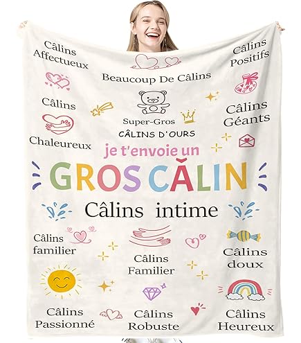 Aussi chaleureuse qu'un vrai câlin et toujours disponible, elle répand la bonne humeur et une sensation de bien-être. SECOGM Cadeau Meilleure Amie Noel, Idée Cadeau Amie, Plaid Couverture Anniversaire Meilleure Amie, Cadeau Amie Femme Original Utile pour Un Anniversaire Noel la Fête Un Mariage, 152cm x 127cm Compagnon idéal, notre couverture vous accompagnera pour une sieste douillette au travail. Plaid Doux Message Câlin Cadeau Meilleure Amie, Cadeau Pour Une Amie, Couvertures Et Cadeau Personnalisé Imprimée sur le devant, elle est un cadeau d'anniversaire idéal pour une meilleure amie. Cette couverture est aussi douce qu'un câlin dans le froid, et procure une sensation de détente et de confort Matériau doux pour la peau et lisse : cette couverture cadeau pour votre meilleur ami est confortable et douce au toucher. Il est fabriqué en 100 % fibre de... 💧【Entretien facile et pratique】 : Cette couverture cadeau pour meilleure amie est facile à entretenir, à nettoyer et à sécher. Offrez-lui un cadeau de couverture pour meilleure amie. Cadeau à fabriquer pour sa meilleure amie – 58 idées faciles à réaliser Emportez ce plaid léger partout avec vous 👍【Matériau de haute qualité】: Cette couverture est fabriquée en microfibre de polyester de haute qualité, douce et confortable, infroissable, résistante à la décoloration, aux peluches et aux dommages. Câlinez-la avec un confort luxueux, de beaux motifs et des mots attentionnés ❤️【Cadeau pour petite amie】Une couverture unique et inspirante pour votre petite amie, sœur, épouse, collègue ou mère, avec l'inscription « Un gros câlin pour toi ». Utilisez-la dans la chambre, le salon ou en voyage : elle sera votre compagnon idéal