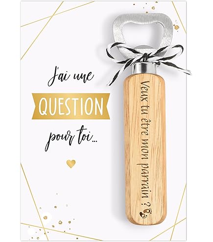 Parrain Cadeaux Irrigao Cadeau Parrain Noel Porte Clef Parrain Cadeau Original, Cadeaux Idées Cadeaux Pour Son Parrain Idées cadeau de bijou personnalisé pour marraine ou parrain Cadeau noël parrain | Bouteille personnalisée je t'aime parrain MULTIPLES OCCASIONS : Ce décapsuleur en bois est un cadeau sincère qui convient parfaitement à toutes sortes de célébrations, qu'il s'agisse de la fête des pères, de Noël, d'une fête, d'un anniversaire ou de toute autre occasion spéciale et mémorable. Cadre cadeau parran et marrane au crochet . Cadeau bapteme - Etsy... CONVIENT POUR TOUTES LES FÊTES : Ce décapsuleur en bois est magnifiquement conçu pour diverses occasions telles que les dîners, les rassemblements et les pique-niques. - Une idée de cadeau parfaite Cadeau Pour Parrain : Ce décapsuleur en bois exquis est un cadeau attentionné pour les parrains, exprimant leur gratitude et leur respect Fabriqué en bois naturel, ce décapsuleur est respectueux de l'environnement et de la santé, et il est polyvalent : - Idéal pour une utilisation quotidienne à la maison - Idéal pour les fêtes et les rassemblements - Outil professionnel pour les bars et les restaurants - Idéal pour les pique-niques en plein air et les séjours en camping.