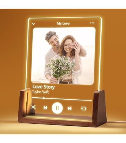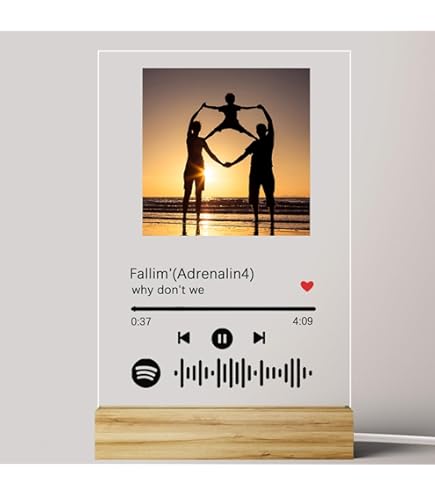 Plaque de musique en verre personnalisée Spotify Code Art, veilleuse et porte-clés. Vous pouvez choisir la couverture de l'album ou télécharger votre photo préférée, ajouter le titre de la chanson, le nom de l'artiste ou quelqu’un proche de vous pour créer des cadeaux personnalisés. La plaque de chanson en acrylique est un cadeau parfait pour votre bien-aimé à Noël, la Saint... Installation Facile – Glissez le cadre photo en acrylique dans la fente de la base pour une configuration rapide. Veuillez noter que la plaque elle-même ne lit pas la musique ; vous devrez utiliser votre téléphone pour écouter. ---- Veuillez penser à retirer le film protecteur avant utilisation. Un cadeau personnalisé parfait pour immortaliser des souvenirs spéciaux. Matériau Acrylique Premium – Jusqu’à 98 % de transmission de lumière pour un affichage clair et lumineux. 【Plusieurs Options de Socle pour S’adapter à Tous les Styles】: Choisissez parmi une gamme de designs de socle pour correspondre à votre décoration et à vos goûts personnels. Plaque Verre Spotify Cadeau Spotify Cadre Photo Musique Spotify Plaque Photo Musique 【Fabrication en Acrylique de Haute Qualité】: Nos plaques Spotify personnalisées sont fabriquées en acrylique premium, offrant une durabilité exceptionnelle et un design moderne et élégant. REMARQUES IMPORTANTES La plaque acrylique pour cadre photo est dotée d'un film protecteur marron anti-rayures sur une face. Cadre Photo Lumineux Cadeau Plaque Spotify Personnalisé Couple Amie - Lampe Cadre Photo En Verre - Cadeau De Saint Valentin Pour Femme Homme Copine Copain - Cadeaux Pour ST Valentin Anniversaire (4 Tailles: 15-25 Cm Cadeau Personnalisé Photo Spotify Veuillez le retirer avant utilisation. 【Plaque Spotify Personnalisée Unique】: Créez un cadeau unique en cliquant sur le bouton « Personnaliser maintenant ». Cadeaux Photo Personnalisés – Personnalisez la photo et le texte pour créer un cadeau unique. Cadeau Saint Valentin Femme Homme, Spotify Plaque Personnalisé Cadeau... Nous utilisons une technologie allemande avancée d’impression UV haute définition pour garantir que votre photo apparaisse vive, détaillée et très précise – avec une excellente tenue des couleurs qui ne s’estompe pas facilement avec le temps. Il suffit d’ouvrir Spotify, de taper sur l’icône de l’appareil photo en haut à droite et de scanner le code figurant sur la plaque. 【Parfait pour Toutes les Occasions Spéciales】: Ajoutez le titre de la chanson, l’artiste et le lien Spotify de votre choix pour créer un cadeau unique et personnalisé. Chaque plaque est recouverte d’un film protecteur pour éviter les rayures pendant la livraison. Ajoutez votre photo préférée et un code Spotify scannable – une fois scanné dans l’application Spotify, il lancera immédiatement la chanson choisie. Les options incluent un support en acrylique minimaliste ou notre socle en forme de U en noyer, disponible avec lumière chaude, tricolore ou RGB.