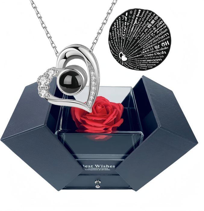 Collier en argent sterling or rose : la chaîne plaquée or rose à l'intérieur de la boîte à bijoux est fabriquée en argent sterling 925, et le pendentif en forme de cœur est fabriqué en cuivre plaqué argent 925., Au centre du pendentif, il est incrusté d'un oxyde de zirconium 5A de qualité gemme. Nos fleurs sont exquises avec des couleurs vives, toutes les femmes vont adorer ce cadeau romantique et surprenant. Il y a un tiroir sous la boîte, il est idéal pour placer votre cadeau personnel, comme une bague de bijoux, une alliance ou un collier ou d'autres petits bijoux. Roses préservées faites à la main qui durent 3 à 5 ans sans arrosage ni conservation quotidienne, il suffit de les garder propres et dans un environnement normal. Coffret Rose Éternelle - Avec Collier Gravé & Vraie Rose Cadeau parfait : notre rose enchantée est fabriquée avec des fleurs immortales haut de gamme, et est livrée avec un emballage exquis. Les gens l'appellent « fleur jamais fanée » et « fleur éternelle ». Coffret cadeau rose rouge éternelle avec collier - Véritable rose... À tout moment, pour toute question, envoyez-nous un e-mail en cliquant sur « Contacter le vendeur », vous obtiendrez une solution satisfaisante dans les 15 heures. Véritable fleur de rose faite à la main : la rose éternelle préservée est fabriquée en 100 % véritable rose fraîche avec un processus de conservation unique. Idée cadeau unique : la belle boîte à tiroir transparente, le sac cadeau extérieur et la carte de vœux en font un beau cadeau luxueux. Coffret Luxe Rose Et Bijou Fleur Préservée Boîte Cadeau Rose Éternelle Avec Collier Boucles D'Oreilles Argent 925 - Cadeau Fête Des Mères Saint-Valentin Cadeau Femme Romantique Rose Eternelle Coffret Cadeau Collier Femme , Gravé Je t'aime Rose Rouge éternelle... Garantie : c'est notre honneur de servir les clients, et nous sommes très heureux de servir les clients.