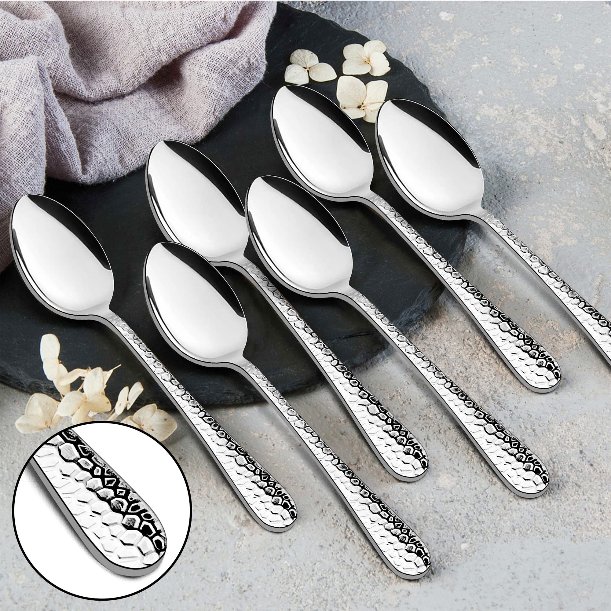 Couler un Cuillère en bois à Long manche de Style japonais, pour... Finition fine - Bords lisses sans zones ni coins rugueux, la surface polie miroir reste toujours brillante et le design ergonomique tient confortablement dans la main, le bon poids assure un maintien ferme Design martelé - Design moderne et élégant avec martelée, surface lisse et polie miroir restent toujours brillants, connt à tous les styles de vaisselle de cuisine Cuillères Inox 15cm Lave-vaisselle Manche Marteau Lot 12 Cuillères à Café Inox HaWare - Design Marteau 15cm - Lave-vaisselle - Argenté Cuillères Design Martelé Lot Cuillères Café 12 Pièces Acier inoxydable de qualité supérieure - Le lot de 12 cuillères à café HaWare est fabriqué en acier inoxydable de qualité supérieure, qui t une résistance à la rouille et une dureté élevée, non toxique et sans nickel, sain et durable pour un usage quotidien, facile à nettoyer et passe au lave-vaisselle Acier inoxydable de qualité supérieure - Le lot de 12 cuillères à café HaWare est fabriqué en acier inoxydable de qualité supérieure, qui t une résistance à la rouille et une dureté élevée, non toxique et sans nickel, sain et durable pour un usage quotidien, facile à nettoyer et passe au lave-vaisselle Lot de 12 cuillères à café HaWare (manche marteau). Posate Acciaio Inox Set De Couverts HaWare 60 Pièces - Acier Inoxydable - Pour 12 Personnes - Design Poignée Marteau - Lave-vaisselle Safe Couverts Haware Ménagère