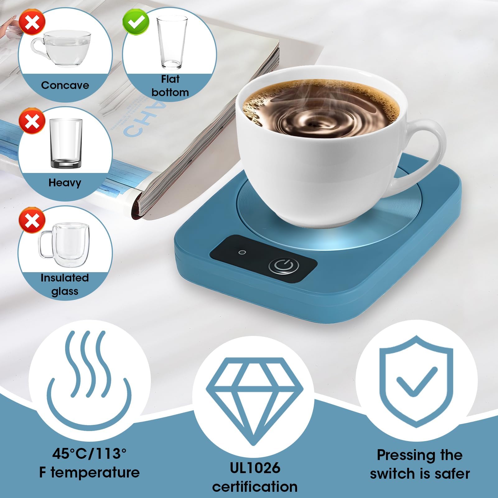 Les tasses isothermes à double paroi sont déconseillées. Petit électroménager Plaque chauffante tasse au Cameroun... La surface imperméable du chauffe tasse electrique se nettoie facilement avec une serviette ou un essuie-tout, éliminant ainsi les étapes de nettoyage fastidieuses et simplifiant l'entretien. Diamètre de la plaque chauffante : 13 cm. Réchaud Pour Tasse De Bureau Chauffe Tasse De Café, Tasse Chauffante, Électrique Chauffe Tasse Pad Réchauffe Tasse Usb Facile à utiliser et à nettoyer : Grâce à sa fonction de chauffage par simple pression, réglez rapidement et facilement la température du mug warmer. Sa conception basse consommation avancée rend le chauffante sûr et économe en énergie. Matériaux de haute qualité : Réchauffe tasse est fabriqué en pp et en aluminium de haute qualité, ce qui le rend sûr et durable. Compatibilité universelle : La grande plaque chauffante plate du chauffe-tasse à café, est compatible avec une variété de matériaux de tasses, notamment l'acier inoxydable et la céramique. Rechauffe tasse allie beauté et praticité. La conception intelligente de la tasse auto chauffante maintient la température idéale. La sous tasse chauffante offre une grande surface de chauffe pour une large gamme d’applications. Conservation constante de la température : grâce à sa technologie avancée de contrôle de la température, la tasse auto-chauffante APEKX maintient constamment votre boisson à une température optimale de 55 °C. Profitez de chaque gorgée à sa température parfaite, à tout moment Tension nominale : 220 vTempérature : Constante de 55 °c. C'est l'une des meilleures façons d'exprimer son amour et de prendre soin de ses proches. Chauffe Tasse Vert, Réchauffe Tasse Electrique 55 ℃ Tasse
