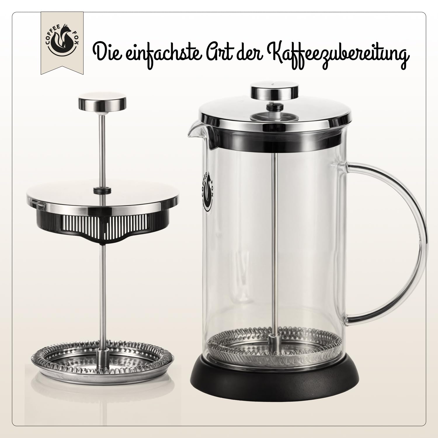 Récipient en verre borosilicaté au goût neutre, poignée en plastique. Bodum Cafetiere Piston French Cafetière - Passoire à Café - 350 Ml- Verre | Hk Boutique Presse à Café Méthode Douce 🌱 𝗥𝗘𝗦𝗣𝗘𝗖𝗧 𝗗𝗘 𝗟'𝗘𝗡𝗩𝗜𝗥𝗢𝗡𝗡𝗘𝗠𝗘𝗡𝗧 𝗘𝗧 𝗗É𝗩𝗘𝗟𝗢𝗣𝗣𝗘𝗠𝗘𝗡𝗧 𝗗𝗨𝗥𝗔𝗕𝗟𝗘 - L'environnement peut également se réjouir, car il n'est plus nécessaire d'utiliser des consommables tels que des capsules ou des sachets filtres. Cette cafetière Frenchpress est donc parfaite pour les familles, les collèges ou les colocations. ☕ 𝗘𝗫𝗖𝗘𝗟𝗟𝗘𝗡𝗧 𝗚𝗢Û𝗧 𝗗𝗨 𝗖𝗔𝗙É - Les huiles naturelles et les arômes de torréfaction du café moulu sont libérés sans être altérés par le verre en borosilicate au goût neutre du récipient et sont ainsi idéalement mis en valeur. Si ce n'est pas le cas, renvoyez la carafe filtrante à pression et vous serez immédiatement remboursé., Sans si ni mais ! Presse à Café Cafetière French Press MAISITOO 1000ml - Verre Borosilicate - Filtre Inox - Pour Café Et Thé Cafetière A Piston Le système éprouvé de filtre à pression vous garantit une expérience gustative complète et pleine d'arômes qui fera battre votre cœur d'amateur. Très robuste et durable, et résistant de manière fiable au lave-vaisselle. Permet de préparer jusqu'à huit tasses de café. ✨ 𝗘𝗫𝗖𝗘𝗟𝗟𝗘𝗡𝗧𝗘 𝗙𝗢𝗡𝗖𝗧𝗜𝗢𝗡𝗡𝗔𝗟𝗜𝗧É - Profitez d'un café de première qualité, sans panne due à une soupape de passage bouchée par du marc de café, à des sacs filtrants pliés ou autres. Nous vous garantissons un rapport qualité-prix incomparable ! Récipient en verre borosilicate résistant aux hautes témépatures avec bec antigoutte. Coque élégante avec poignée ergonomique et languette de serrage pour maintenir fermement et en toute sécurité la carafe à l'intérieur. Filtre amovible en acier inoxydable 304 (18/10) facile à utiliser. Facile à laver et passe au lave-vaisselle Bodum French Press Brazil - 1L / 8 Tasses Cafetière à Piston - Verre Résistant & Filtre Acier INOX - sans BPA Lavable au Lave-Vaisselle - Cafetière Classique... Elle vous permet de compléter avec style votre équipement de cuisine haut de gamme. Laissez-vous convaincre dès maintenant ! 💡 𝗖𝗢𝗡𝗖𝗘𝗣𝗧 𝗜𝗡𝗡𝗢𝗩𝗔𝗡𝗧 - La cafetière a une capacité d'un litre et possède un système d'infusion éprouvé avec un filtre permanent en acier inoxydable. Cela commence par le design : La French Press en verre est rectiligne, simple et pourtant élégante.