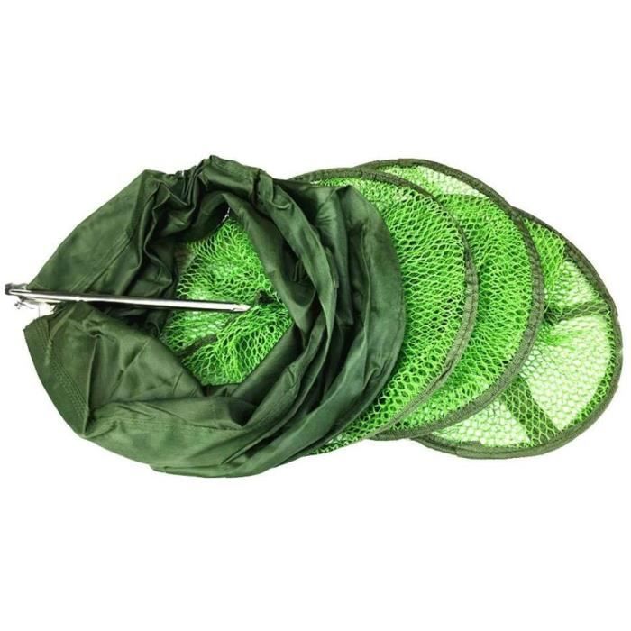 Filets de pêche, épervier, carrelet & senne | Larrieu Frères Peut être plié à la main, réduisant considérablement les coûts de stockage et de transport. Chalut Pliant Nylon Transport Pliable Filet De Pêche Cage Cage À Poissons Flottant Crabe Panier Pliable De Pêche Panier Piège à Poisson Maille Nylon Pratique à transporter : il a une utilisation pratique, économique et d'autres caractéristiques. Ce produit est le premier choix pour la pêche récréative en plein air, peut être plié et très facile à transporter. Équipement parfait pour les pêcheurs Piège à Filet Pliant Piège à Crabe Piège à Maille Piège à Crevettes... Remarque : vous devez acheter une cage de pêche au chalut plus large que le chenal de la rivière. Ce produit est le premier choix pour la pêche récréative en plein air, peut être plié et très facile à transporter. Lors de l'utilisation, il se plie à un certain angle en raison de l'impact du débit d'eau. Longueur de la queue : environ 185 cm Équipement parfait pour les pêcheurs : un filet de pêche durable universellement utilisé pour garder les poissons, l'éperlan, les vairons, les crabes, les crevettes, les homards, etc. Matériau : corde en nylon + métal., Couleur : vert., Hauteur : environ 95 cm.