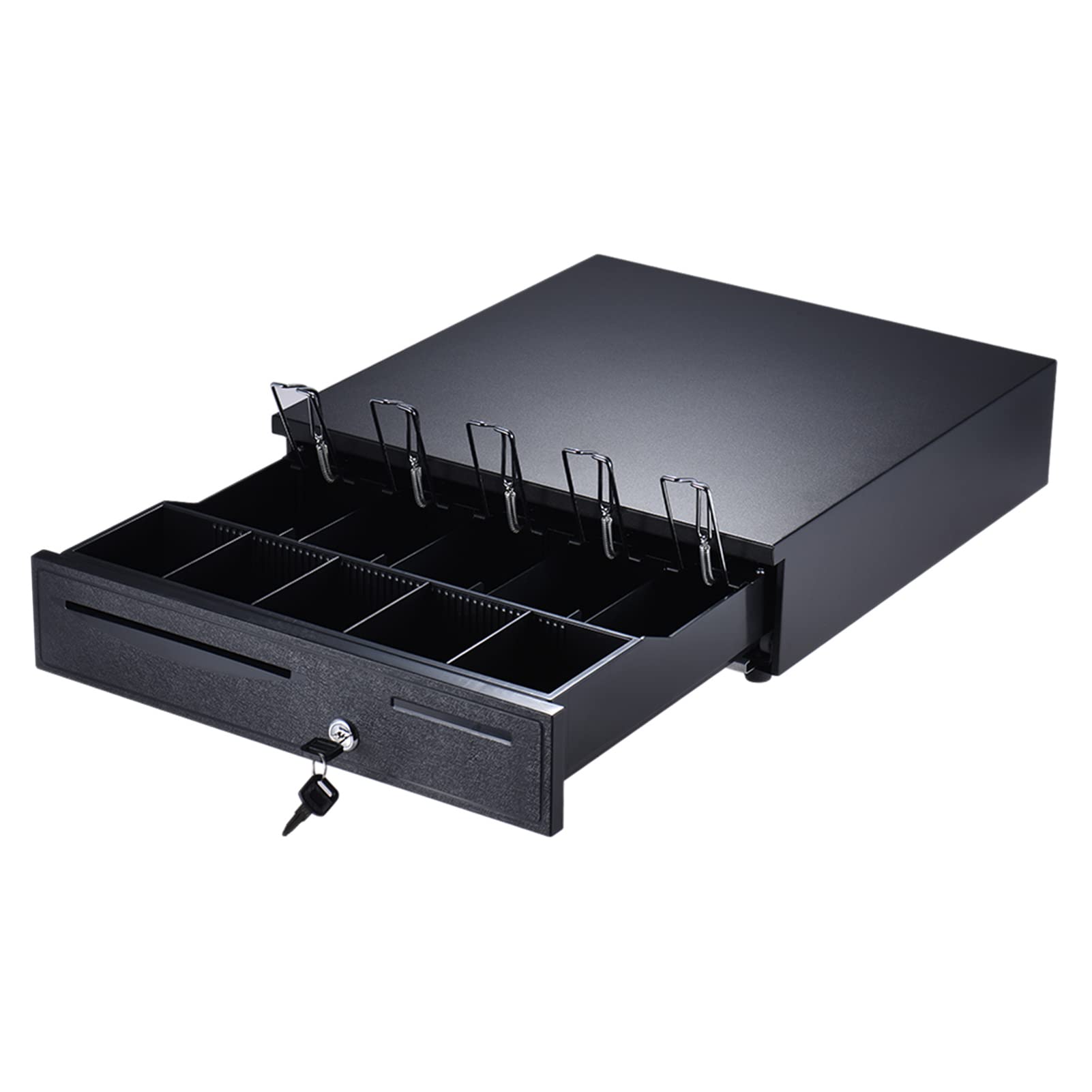 C'est un outil idéal pour la gestion et le stockage de l'argent. Caisse Filex avec insert pour pièces et / ou compartiments pour billets Haute sécurité : ce produit dispose d'un verrou à 3 bits (allumage manuel, contrôle électrique, serrure) pour assurer un stockage sûr de l'argent et prévenir le vol Compartiment Billet Pour Caisse à Monnaie VEVOR Tiroir-Caisse Enregistreuse 41 Cm Tiroir-Caisse Manuel Et Automatique Compartiments 5 Billets 8 Pièces Tiroir Caisse Enregistreuse Port Tiroir Caisse électronique Le design global est compact, facile à utiliser et convient pour une utilisation dans les magasins de détail, les restaurants, les cafés et autres endroits. Clips fixes : les clips fixes dans les fentes pour billets vous aident à sécuriser les billets et à les garder bien rangés et en toute sécurité. Lybunair Tiroir de caisse enregistreuse avec 5 billets, 8 emplacements, interface RJ11 et serrure à clé à 3 positions pour petites entreprises... Haute stabilité : les quatre pieds en caoutchouc au fond disposent de fonctions d'absorption des chocs et de protection antidérapante qui peuvent maintenir efficacement la stabilité du produit Si l'arrière du produit est plus haut que l'avant, la force d'éjection est trop forte en raison de la gravité, ce qui peut endommager le produit. Tiroir caisse enregistreuse automatique et manuelle RJ11 Compatible POS 8 compartiments monnaie 5 billets · Plus d'information sur le produit vendu 61,80 EUR Dimensions du colis : 48,5 x 46 x 16,5 cm., Poids brut : 5,2 kg., Poids net : 4,94 kg. Procédé : peinture de cuisson, moulage par injection Style : moderne Forme : angle droit Type de montage : plateau de table Interface : RJ11 Nombre de fentes pour factures: 5 Nombre de compartiments à pièces : 8., Dimensions du produit : 42,5 x 40,5 x 10 cm. Si l'avant de l'appareil est plus haut que l'arrière, l'élasticité est bloquée en raison de la gravité, ce qui affecte le fonctionnement et l'effet d'utilisation., 2., Veuillez noter que ce produit ne contient pas d'argent liquide ou de pièces de monnaie., 3., Les mesures étant prises à la main, les tailles indiquées peuvent varier de 1 à 3 cm. Il y a plusieurs compartiments indépendants pour classer facilement les billets et les pièces de monnaie de différentes valeurs nominales. Durable : l'acier de qualité et le plastique, la peinture fine et les processus de moulage par injection rendent ce produit robuste, résistant aux rayures, aux chocs, pas facile à corroder et à déformer, pour assurer une longue durée de vie
