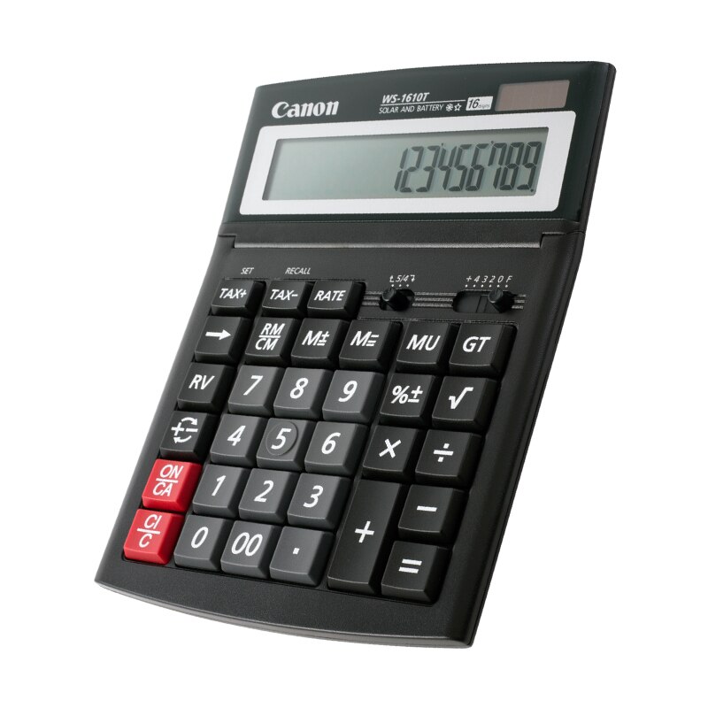 Calculator de birou Canon WS-1210T Cluj-Napoca Canon WS 1610T Calculatrice (bureau indiquer Noir 16,69 5,59 x 113 23 mm mm) ; Amazon Marketplace Logo, 29,68 €, Voir l'offre ; Amazon Logo, 31,04 €, Voir l'offre... Calculatrice Canon Double Puissance Calculatrice Canon WS-1610T - Calculatrice De Bureau - 16 Chiffres - Panneau Solaire, Pile - Noir Calculatrice Bureau Noir Ergonomique Description du produit La WS-1610T est une calculatrice de bureau avec un écran de 16 chiffres et des fonctions spéciales de calcul de taxes. Elle présente d'autres avantages tels que l'écran LCD réglable, le clavier tactile IT, la double alimentation en énergie et le design professionnel dans un noir élégant. • ecran à 16 chiffres • écran LCD réglable vers le haut et vers le... Dimensions : (L x l x h) : 198 x 150 x 38 mm , Poids : 238 g Cette calculatrice de bureau à 16 chiffres est doté de fonctions de calcul fiscales et un écran LCD réglable.