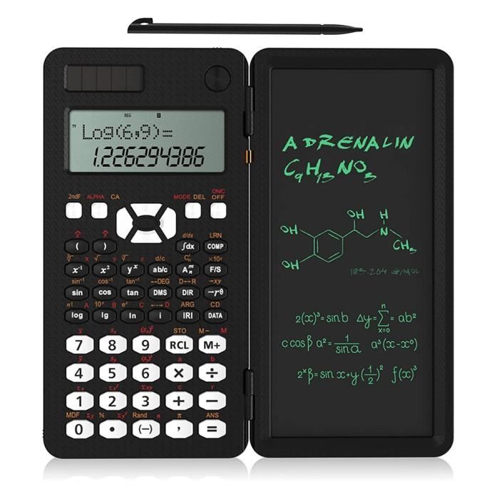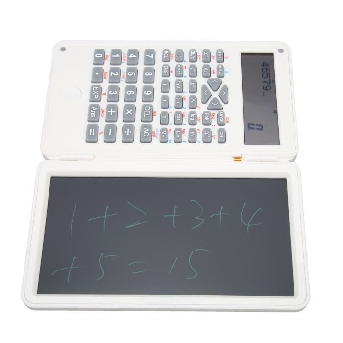 Deux lignes : cette calculatrice de bureau adopte un affichage à deux lignes à l'écran, améliorant ainsi votre efficacité d'étude et de travail. Calculatrice Bureau Calculatrice Scientifique Avec Bloc-Notes, Calculatrice à Outil Bureau école Réunion Polyvalent Écran LCD à deux lignes, caractères clairs Écran LCD à matrice à points avec grand angle de vision et affichage numérique clair ; L'affichage sur deux lignes facilite et accélère les calculs. YID Calculatrice avec bloc-notes Calculatrice scientifique portable... Multifonctionnel Une expérience plus intelligente Tablette d'écriture : cette calculatrice de bureau est conçue avec une tablette d'écriture de 6 pouces, vous permettant de prendre des notes tout en calculant, en appelant et en vous réunissant. Écran LCD : cette calculatrice de bureau adopte un grand écran LCD qui peut afficher clairement les chifes et les résultats.240 fonctions : cette calculatrice... Clés résistantes à l'usure Les signes numériques sont clairement affichés et les touches sont légères et structurées, confortables et agréables au toucher. Couvercle de protection à gauche et à droite pour protéger les touches de l'usure, chaque couche de protection est un reflet de la qualité du produit. Taille compacte : cette calculatrice fonctionnelle légère et compacte est un choix idéal pour la finance, le bureau, les comptables, l'école et la maison. Calculatrice Pliante de 6 Pouces, Bloc-Notes LCD, Portable pour Bureau à Domicile[L116 Grand écran de 6 pouces pour l'écriture manuscrite Pas de lumière bleue, pas de rayonnement, le calcul et l'écriture, pour vous donner l'impression d'écrire sur du papier. 240 fonctions : cette calculatrice scientifique dispose de 240 fonctions de calcul qui peuvent répondre à presque vos besoins de calcul quotidiens.
