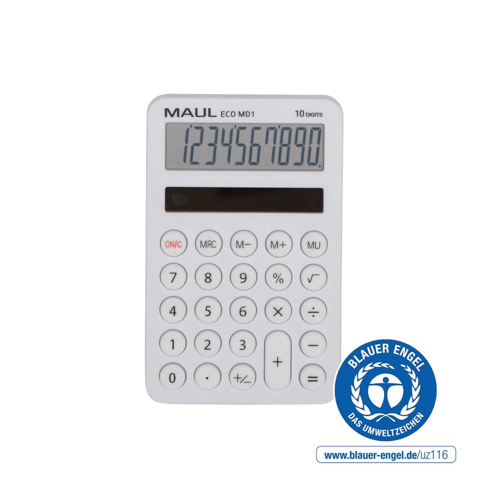Calculatrice Plastique Recyclé Ange Bleu Maul Eco MD 1 Calculatrice Solaire Avec 10 Chiffres Et 5 Fonctions Calculatrice Casio College MAUL Calculatrice de poche ECO MD 1 LCD-Anzeige 1 ligne, 10 Le calculateur de poche ECO MD 1 est une calculatrice scolaire écologique qui se distingue par sa technologie solaire. Avec un grand écran LCD à une ligne offrant de la place pour jusqu'à dix chiffres, il est idéal pour les calculs mathématiques de base. Ce calculateur n'est pas seulement fonctionnel, mais aussi durable, car il est fabriqué à partir de 60 à 80 % de plastique recyclé... La petite calculatrice est alimentée par l'énergie solaire, pas de batterie et pas de changement nécessaire. Lorsque vous ne l'utilisez pas, la calculatrice s'éteint automatiquement. Les touches sont caoutchoutées pour éviter tout glissement. Respectueux de l'environnement: Le boîtier de la calculatrice solaire est composé à 80 % de plastique recyclé. Polyvalente: La calculatrice solaire de poche est parfaite pour les cours scolaires, les fournitures de bureau et les activités en plein air. Que vous souhaitiez effectuer des calculs rapides ou travailler durablement en déplacement, la calculatrice MAUL est un compagnon idéal. Chaque produit MAUL a l'expérience d'une entreprise familiale allemande avec 110 ans d'histoire. Qu'est-ce qui distingue la calculatrice ECO MD 1 ? Engagement Bleu (uz116) Certifiée respectueuse de l'environnement et durable. Technologie solaire fonctionnant dès 50 Lux Alimentation même à faible luminosité. 60% de plastique recyclé Fabriquée à partir de matériaux recyclés, consciente de l'environnement et économiquement responsable. Fonctions particulières Avec calcul de...