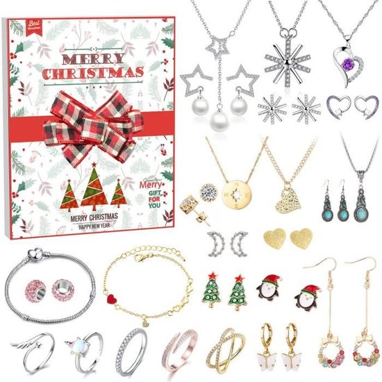 Ensemble (collier, bracelet et boucles d'oreilles), Hattie Carnegie Ce calendrier avent compte à rebours à 24 cases. Du 1er décembre au jour de Noël, les surprises quotidiennes offertes à l'ouverture de la boîte surprise donneront aux enfants une idée de Noël impatiemment attendue. Le bracelet est doté d'un fermoir rotatif permettant aux filles d'enfiler facilement des perles. La longueur de chaque bracelet est réglable, ce qui le rend adapté à la... Cadeau Original Mère Sœur Amie Calendrier De L'Avent Bijoux, 24 Surprises Bijoux Femme Bracelet Calendrier Avent Collier Bracelet Voeux de Noël parfaits : le calendrier de l'Avent apporte la beauté et la joie de Noël. Il contient 12 bijoux différents, parfaits comme cadeau pour votre petite amie, mère, sœur, épouse, petite amie, fille ou vous-même. Bijoux calendrier de l'Avent - AMOUNE - Collier, Boucles d'oreilles... Ce cadeau mystérieux et raffiné ravira certainement vos proches. Ce sentiment d'anticipation et de surprise rend le monde entier doux et beau. Derrière chaque porte de votre calendrier de l'Avent se cache une surprise intéressante. Calendrier de compte à rebours : ce calendrier de l'Avent apporte joie et confort de Noël et constitue un excellent moyen d'exprimer votre amour et de créer de beaux souvenirs de Noël.