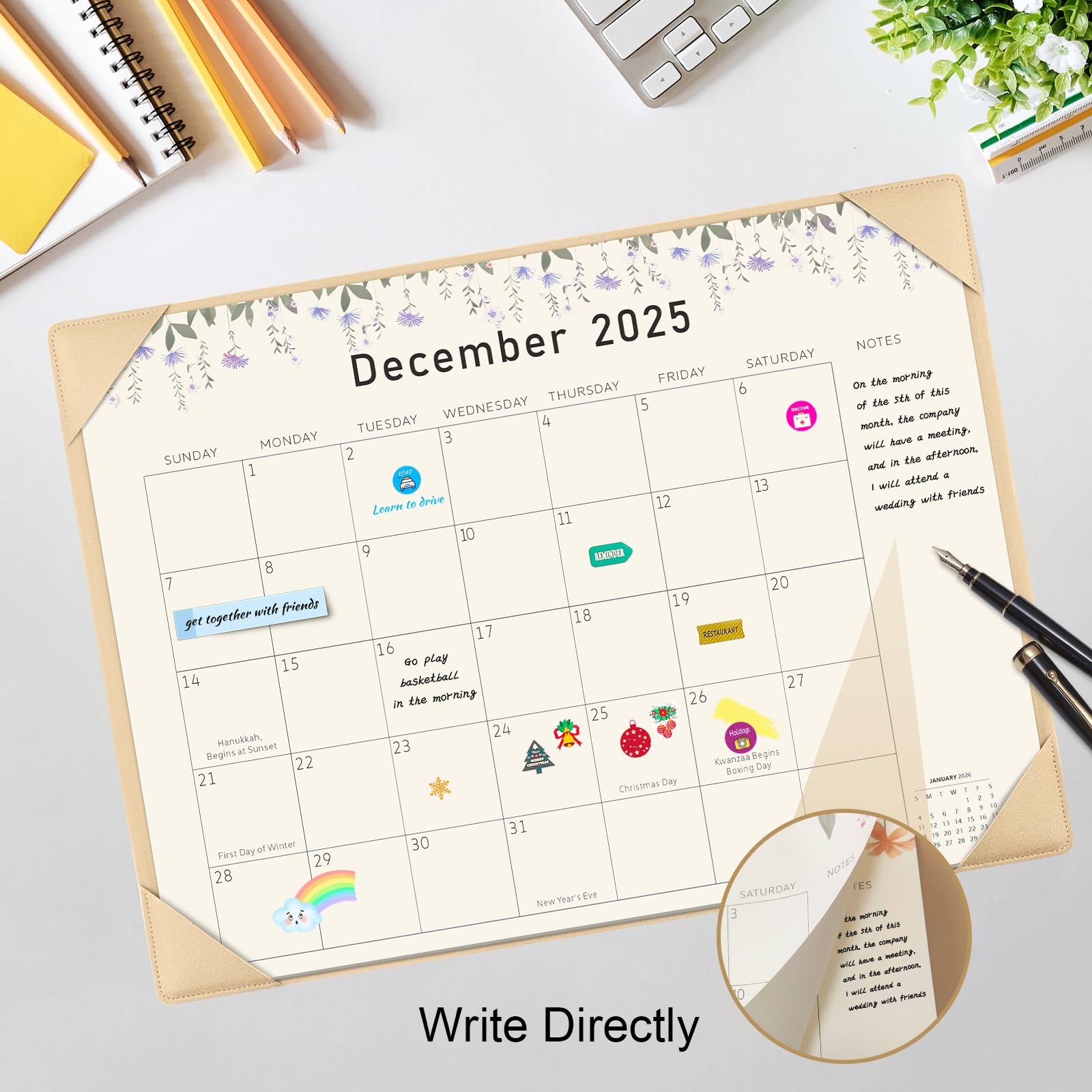 Idée cadeau pratique : Chaque page du calendrier inclut des espaces pour des notes adhésives, parfaits pour gérer les jours fériés, les plannings ou les objectifs. Calendrier De Bureau Calendrier Sous-main Académique / Juillet 2025 à Décembre 2026 (22 X 17 Po.) BLUELINE Calendrier De Table 2026 Planification efficace : Ce mini calendrier de bureau 2025-2026 couvre toute l'année 2025 et 2026, vous permettant de suivre vos rendez-vous et projets importants. Planificateur annuel 2025 avec jours fériés et numérotation des... Idéal pour une organisation simple et rapide au quotidien Le papier haute qualité empêche l'encre de traverser, vous permettant d'écrire des notes au recto et au verso 2024 Calendrier Mural Annuel Planificateur Mural, Grand Agenda Mural de... Parfait pour les enseignants, étudiants et professionnels Le papier haute qualité empêche l'encre de traverser, vous permettant d'écrire des notes au recto et au verso Design compact : Avec ses dimensions de 12 x 6 x 7,6 cm, ce calendrier compact s'intègre parfaitement sur les bureaux, tables de chevet ou espaces restreints. Design compact : Avec ses dimensions de 12 x 6 x 7,6 cm, ce calendrier compact s'intègre parfaitement sur les bureaux, tables de chevet ou espaces restreints. Petit calendrier de bureau 2026 – (floral) 22 x 18 cm, 18 Une solution pratique pour optimiser votre espace de travail Idée cadeau pratique : Chaque page du calendrier inclut des espaces pour des notes adhésives, parfaits pour gérer les jours fériés, les plannings ou les objectifs. Une solution pratique pour optimiser votre espace de travail