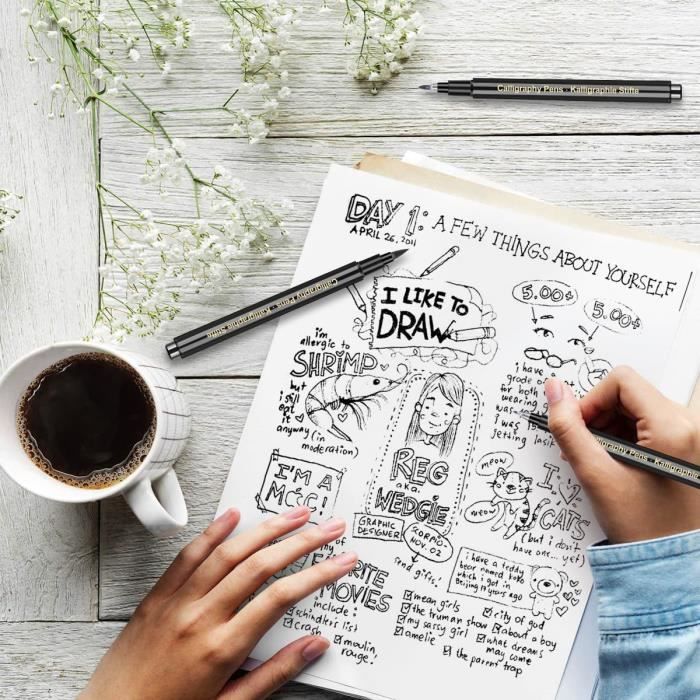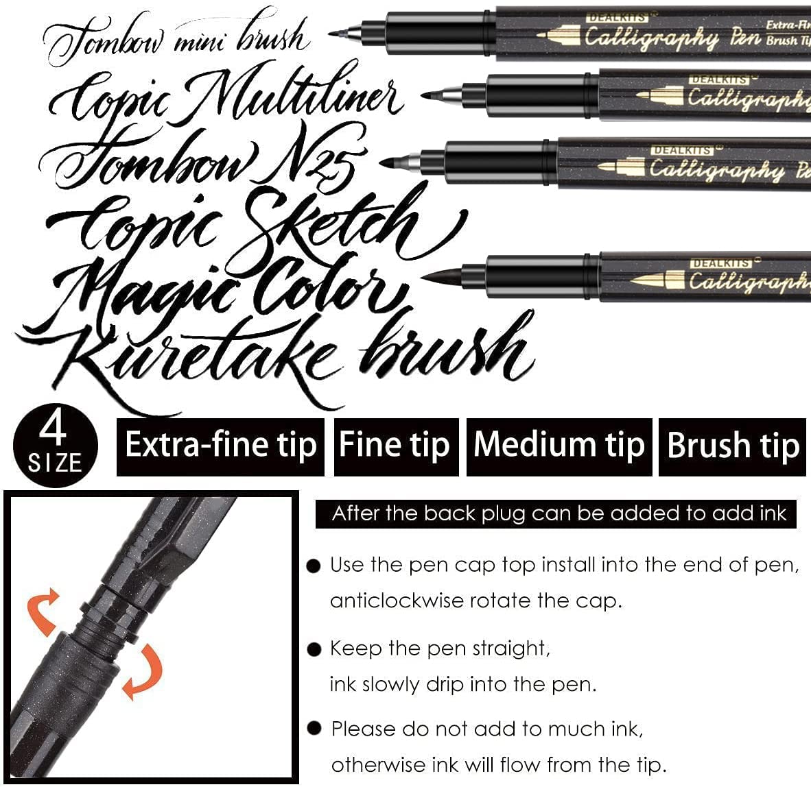 Stylos de lettrage à la main Détails du stylo : Lot de 6 (4 plumes différentes) : 3 stylos pinceaux de calligraphie, 1 stylo pinceau moyen, 1 stylo pinceau fin, 1 stylo pinceau extra fin Encre à base d'eau - Encre noire pigmentée - Séchage rapide - Pas de saignement - Design rechargeable - Encre noire qui coule facilement et uniformément. Stylo De Calligraphie, Pour Débutants, 6 Feutres, Calligraphie, Set D Ecriture Encre Noire Stylos Pinceaux Stylo Lettrage Pour Bullet Journal Illustration Signature Et Calligraphie Pour Enfants Faites des cartes de remerciement Feutre Noir Calligraphie Stylo Calligraphie, 6 Feutre Calligraphie Feutres Calligraphie Débutant Les stylos utilisent de l'encre noire pigmentée japonaise à base d'eau, non toxique, séchage rapide, convient également aux enfants. Lot de 6 stylos de calligraphie Remarque : Chaque recharge d'encre est emballée dans un tube en PVC. Calligraphie Stylo Calligraphie, 6 Feutre Calligraphie Écriture Kit... 【Cadeau idéal】:le de calligraphie noir est adapté à tous les types de calligraphie et d'œuvres d'art, les feutres kit calligraphie sont un cadeau parfait pour la famille – enfants, fils, fille, épouse, mari et amis qui aiment l'écriture, comme un anniversaire, un anniversaire de mariage, Halloween, Thanksgiving, retour à l'école, etc Vous n'avez pas besoin d'essuyer l'encre si vous avez besoin de remplir l'encre. Le stylo feutre : un incontournable pour la créativité et l'écriture Dans les tuyaux en PVC, il peut y avoir une légère excrétion d'encre. Cela empêche l'encre de tacher le stylo. Créer quelque chose de beau L'encre des crayons de calligraphie pour débutants coule lisse et uniformément, très facile à contrôler et à créer de belles lettres. Les différentes épaisseurs de stylos pinceaux (doux et dur) offrent une utilisation multifonctionnelle pour différents styles de police
