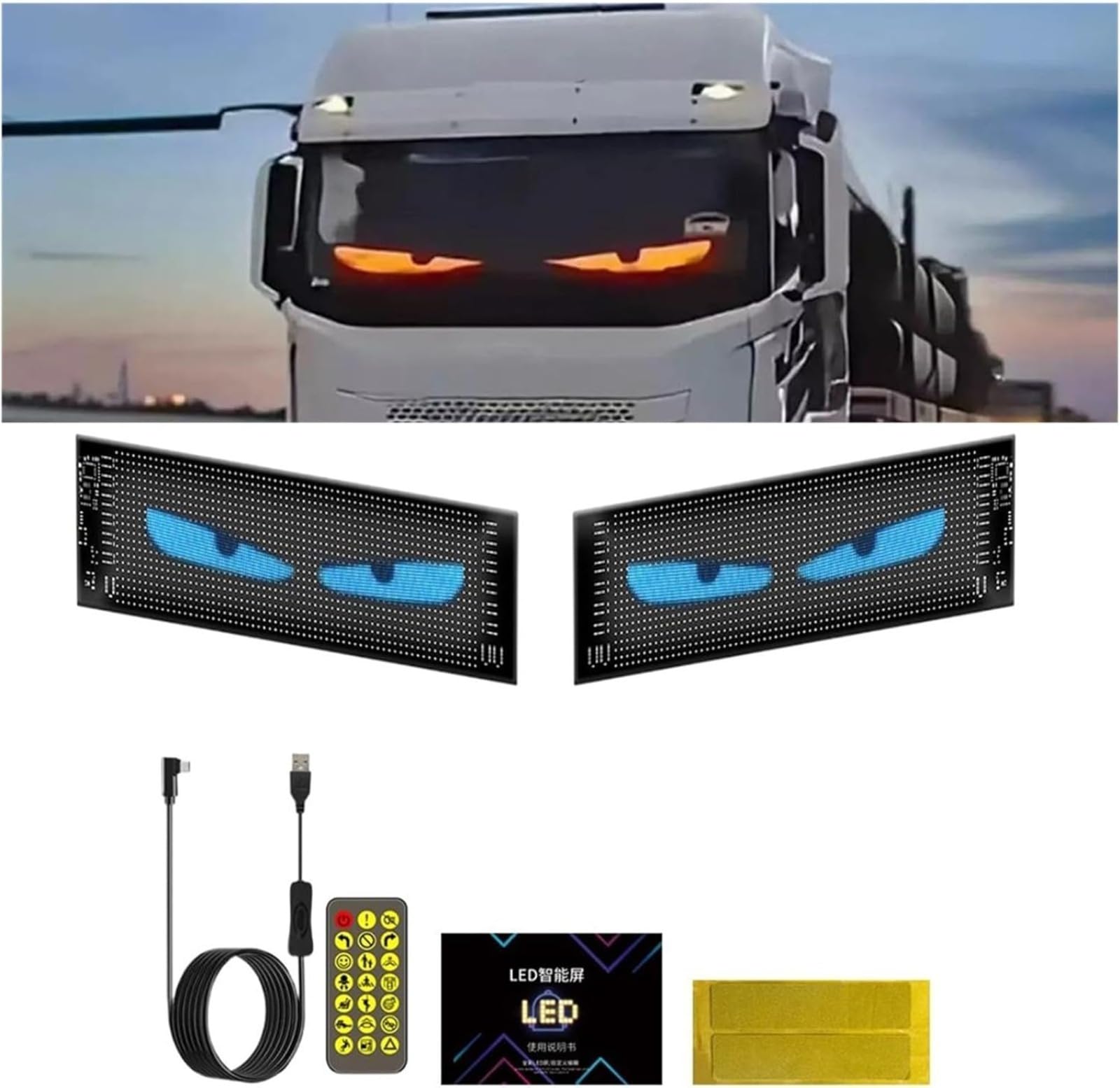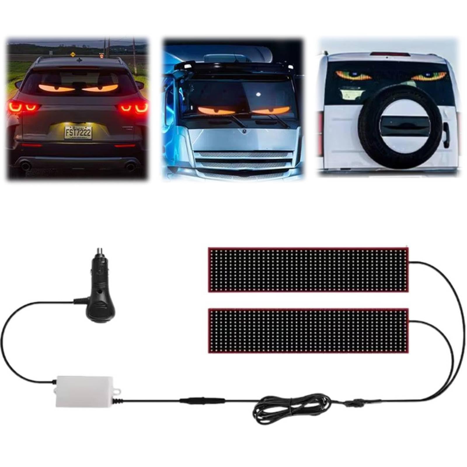 Yeux Led Camion Lot De 2 Panneaux Lumineux Yeux De Diable Pour Voitures Et Camions, Panneau D'écran LED Flexible Pour Fenêtre De Voiture, écran Flexible Programmable Pour Fenêtres De Voiture, écran LED Flexible Yeux Led Pour Camion Ampoules LED pour voitures, différentes couleurs - Test et Avis Yeux de diable lumière pour camion – Écran LED flexible programmable pour fenêtre de voiture ... 37,4 x 9,2 cm. 59,5 x 12 cm. 89,8 x 19,2 cm. 133 x 19,2 cm... Avec seulement 2 cm d'épaisseur, elle est incroyablement légère et facile à installer. Écran LED flexible programmable : l'écran LED flexible programmable (application + télécommande) est très léger et fin, son épaisseur est d'environ 2 mm. Collez l'écran LED BT ultra fin sur la fenêtre de votre voiture pour attirer les regards. Écran souple : peut être plié, plié et façonné pour s'adapter à différentes surfaces. L'écran est conçu pour résister à différentes conditions météorologiques et garantir durabilité et durabilité. Elle peut être utilisée en extérieur. 【Applicable à plusieurs scènes】: l'écran LED flexible et programmable dynamique pour voiture peut être utilisé dans les bars, restaurants, magasins, voitures, vendeurs de rue, fêtes, concerts, décorations de mariage, etc. Customisez votre voiture avec cet écran LED souple ! Affichez textes, motifs (yeux de diable, etc.) et animations via l'appli smartphone