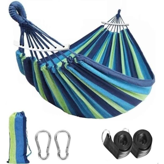 Hamac De Voyage Compact Portable Hamac De Camping Triangle Pas De Terrain Plat Hamac Aérien Géant Conception à 3 Points Hamac Multi-Personnes En Maille à Haute Charge Balcon Voyage Hamac Decathlon Hamac Extérieur Camping Hamacs 2 Personnes 300 X 200 Cm Ultra Léger Coton Hamacs Hamac D'Extérieur De Camping,300 Kg Capacité De Charge... Caractéristiques: Nom: Camping Hamac Matériau: tissu Taille du produit: environ 260x130 cm / 102., 36x51,18 pouces Poids: environ 480g Liste de colisage: 1 * Hamac de camping Note: En raison de différents paramètres d'éclairage et d'écran, la couleur de l'élément peut être légèrement différente de l'image. En raison de différentes mesures manuelles, veuillez permettre une différence de taille de 1 à 2 cm. Système de support fiable : L'alliance unique d'une assise sécurisée antidérapante et d'une répartition avancée de la pression fait de ce hamac outdoor l'idéal pour une relaxation en plein air sans compromis sur la sécurité. Solidité et stabilité améliorées Ce hamac de camping utilise une technologie de tissage 3D innovante et une structure porteuse robuste pour une résistance accrue et une longévité exceptionnelle face à l'usure du temps. Tissu Respirant Rafraîchissant : Structure Cool-Mesh en mélange de soie glacée une circulation d'air optimale et une réduction de la chaleur pour un confort sec lors de vos aventures en camping. Adaptabilité Dynamique : Grâce à son tissu généreux, ce hamac camping assure un maintien ergonomique et un espace de repos ample, s'ajustant naturellement à vos mouvements pendant les loisirs extérieurs. Rangement rapide : Se plie en un format compact intégrant facilement la poche latérale de sac à dos. Jardin Hamac Portable Toile Rayée Hamacs Camping En Plein Air Hamac...