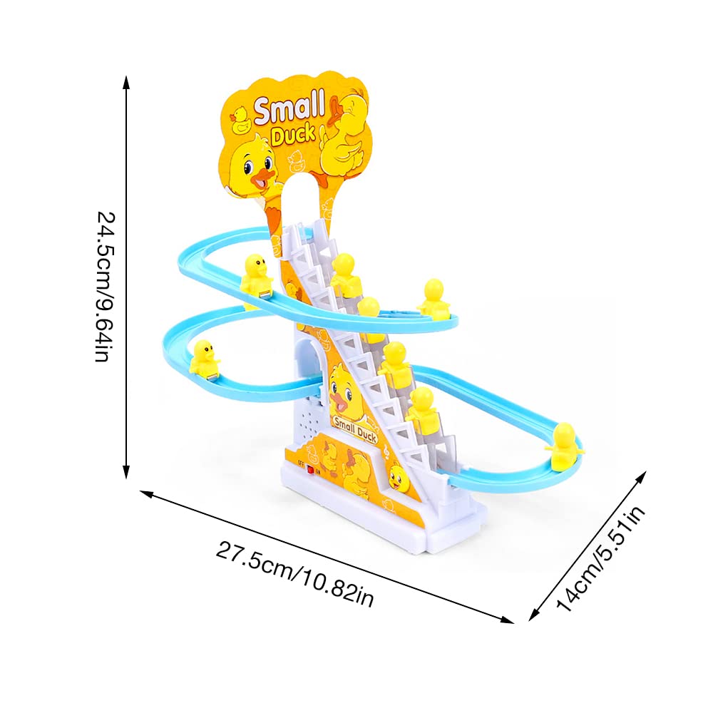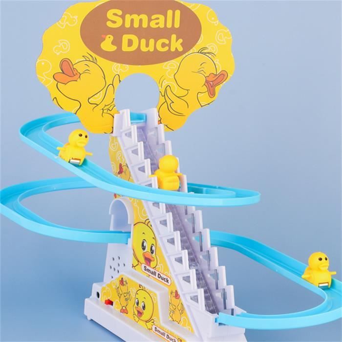 Avertissement De Sûreté Non applicable Facile à installer : le jouet électrique pour monter les escaliers de canard est facile à assembler et à démonter, il suffit de monter les rails marqués par les numéros, puis d'insérer le carton, d'insérer les piles et enfin d'allumer l'interrupteur Matériau de haute qualité : le jouet électrique de canard est fabriqué en matériau ABS de haute qualité, a une surface lisse sans bavures, assure une utilisation sûre et fiable pour que les enfants jouent facilement Chansons : 15 chansons jouées dans une boucle. Petit canard grimpe les escaliers à glisser électrique piste sonore et Le joli petit canard jaune peut monter les escaliers et glisser sur le toboggan Dimensions : 19 x 14 x 8,5 cm Poids : environ Poids : 300 g. La conception de canard électrique, associée à une structure d'escalier, ofe un jeu d'eau interactif qui favorise l'activité physique et l'équilibre... Le kit de montagnes russes canards est le choix de cadeau idéal pour toutes les occasions Description du produit Jouet électrique pour monter les escaliers - Il y a un interrupteur de commande - En allumant l'interrupteur, le canard peut monter indépendamment les escaliers et être plein de plaisir. Jouets sensoriels : le jouet électrique en forme de canard pour développer les capacités auditives et visuelles de perception, combinaison de lumières, de musique et de mouvement stimule plusieurs sens, améliore les capacités cognitives Jouet Sensoriel Enfant Jouet Interactif Canard à Monter Les Escaliers Avec Piste électrique Magical Duck Race Cadeau parfait pour les enfants Les jouets coulissants de canard avec escaliers sont des cadeaux parfaits pour vos amis, voisins et familles, populaires aupr s des enfants et des adultes, apportant joie et rire vos enfants et tout-petits Cadeau idéal : le jouet électrique en forme de canard avec des fonctions créatives et un aspect mignon, incroyablement divertissant, sont d'excellents cadeaux pour les bébés et les enfants.