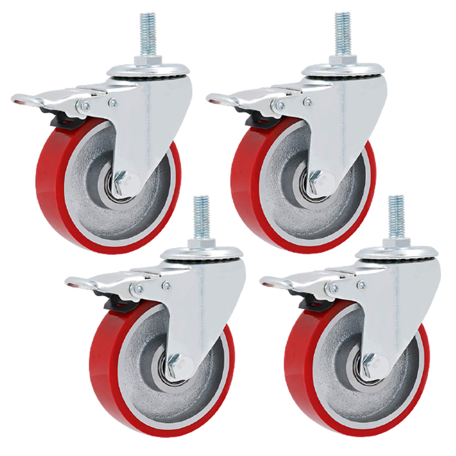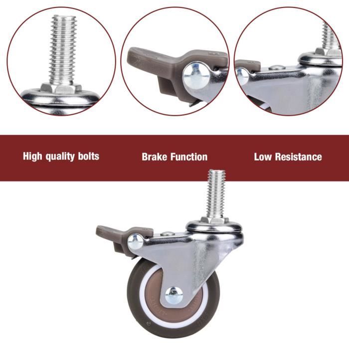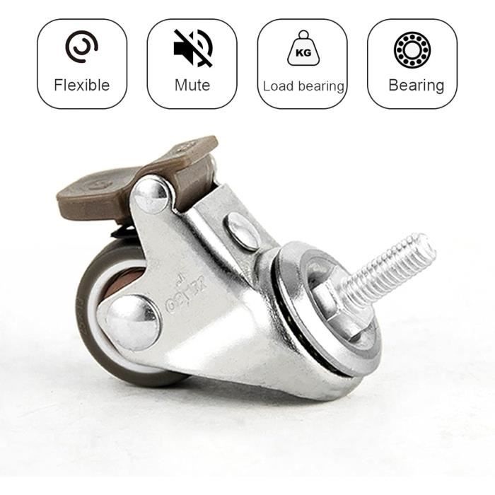 Roulettes Industrielles 4 Roulettes Robustes Tige M11 M14 Silencieux Caoutchouc Roues Pivotantes 480 Kg 4 Pouces 100mm Roulettes De Transport Avec Frein Pivot Meubles Roulettes 100mm Avec Frein Charge 480kg Pivot Universel Ces roulettes pivotantes à 4 pieds et roues en caoutchouc non marquantes sont capables de s’arrêter et de se positionner avec 2 freins. Ils sont parfaits pour diverses utilisations à la maison, dans les écoles, les magasins, les hôpitaux et les applications industrielles Roulettes pivotantes de 2 pouces avec frein, roulettes pivotantes en Une variété de revêtements de sol en caoutchouc très élastique, tels que les sols en bois dur, en carreaux, en marbre, stratifiés, tapis Lot de 4 roulettes pivotante 100 mm avec freins capacité 500 kg. Diamètre du trou de montage : 4 mm. Design anti-enchevêtrement : les côtés de... UNIVERSAL USE- The wheels can be used for a multitude of applications Including: Flight Cases, Instrument Cases, Display / Exhibition Equipment, Dollies, Tool Boxes, Light Machinery, Equipment Stands, Mobile Workstations, Speakers, Cabinets, Stands, Amps, Electrical Enclosures, Furniture etc. Les roulements à billes utilisant des joints apportent une capacité de charge maximale et une longue durée de vie. Nom du produit: roulette de rotation universelle avec frein Diamètre de la roulette: 4 pouces / 100mm Comprend: 2 x pivot avec frein, 2 x pivot Matériau de la roulette: caoutchouc TPR + acier au carbone Largeur de la roulette: 27mm / 1., 06 inch Taille de la tige: M11 × 35mm / M11 × 50mm Taille du manchon en caoutchouc: M15 × 35mm Charge de la roulette: charge totale 480KG (chaque charge de 120KG) Ces roulettes pivotantes à 4 pieds et roues en caoutchouc non marquantes sont capables de s’arrêter et de se positionner avec 2 freins. Les roulettes sont neuves et de haute qualité.