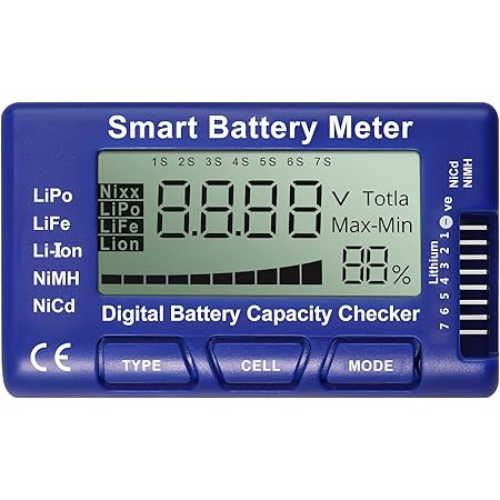 Mode d'affichage : tension des cellules de batterie, tensions totales, tension de cellule la plus faible, écart de tension de cellule le plus élevé entre la tension la plus élevée et la tension de cellule la plus faible, capacité de batterie restante (%). Testeur De Piles Numérique, Testeur De Batterie, Testeur De Batterie... Analyseur Batterie RC YOSOO Testeur De Capacité De Batterie 1.2-12V 18650 Li-ion Plomb-acide Testeur Batterie Numérique Outil Modélisme Batterie Testeur Capacité Batterie RC Fasizi Fonction de compensation - Optimisez les performances de votre batterie et prolongez la durée de vie globale en vous assurant que les cellules individuelles sont équilibrées. Mode d'affichage : tension des cellules de batterie, tension totale, tension de cellule la plus basse, écart entre la tension de cellule la plus élevée et la tension la plus basse des cellules, capacité de la batterie (%) Les résultats des tests conservent une grande précision dans 0,001 V