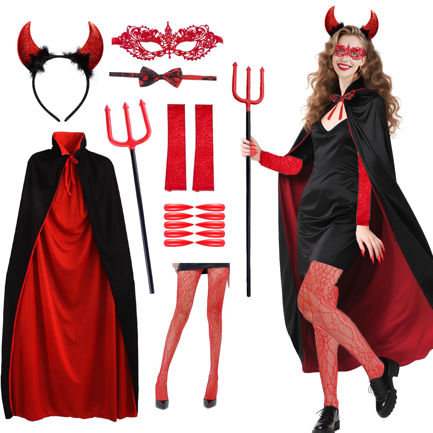 Deguisement Diable Femme, Costume D'Halloween Pour Femme Deguisement Diable Femme Halloween Deguisement Cape De Vampire Femme Corne Diable Fourchette De Diable Pour Carnaval Cosplay Halloween Cape de diable rouge enfant | Funidelia Diable Deguisement LXWINNER Deguisement Diable Femme, Cape De Vampire D'halloween, Cache-œil En Dentelle, Bas Résille, Gants En Dentelle, Cape De Diable Adulte Femme Costume Pour Halloween Carnaval (Corne Rouge Cape Vampire Réversible Halloween Description du produit Deguisement Diable Femme, Costume de Diable pour Femme, Cape de Vampire D'halloween, Cache-œil en Dentelle, Bas Résille, Gants en Dentelle, Cape de Diable Adulte Femme Costume pour Halloween Carnaval Avertissement De Sûreté À utiliser sous la surveillance d'un adulte Le sceptre est en plastique pour garantir sécurité et durabilité, la cape est en tissu doux et agréable à porter. Matériau de qualité supérieure : notre cape de vampire est fabriquée en tissu de haute qualité, léger et respirant, doux et durable, ne se décolore pas... Costume de vampire : cet ensemble de costume de vampire 7 pièces comprend 1 cape double face noire et rouge, 1 paire de bas, 1 sceptre, 10 faux ongles, 1 paire de gants rouges, 1 collier en dentelle, 1 masque en dentelle. CAPE RÉVERSIBLE : cette cape est réversible, la cape noire est cool et mystérieuse, la cape rouge est élégante, deux façons de la porter vous offrent une expérience de style différente. Il crée une atmosphère effrayante parfaite et devient facilement le centre d'attention de tout l'événement. Ces nouveaux accessoires de costume attireront l'attention de vos invités et feront de vous la star rayonnante de la fête.