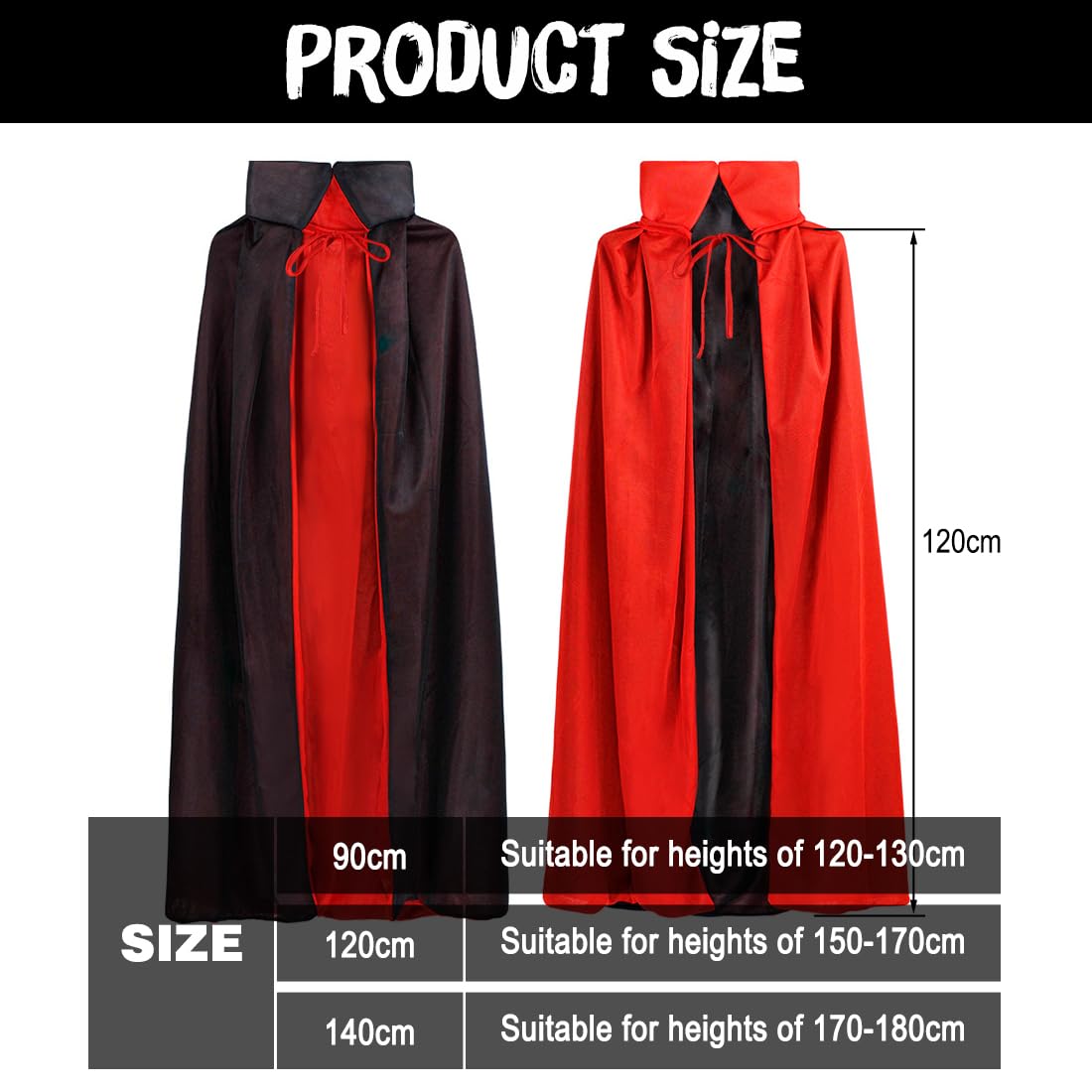 Laissez libre cours à votre créativité ; elle est parfaite pour les vampires, les sorcières, la Faucheuse et bien plus encore. Cape Satin Noir Rouge Capuche Cape De Vampire Pour Enfant, Cape De Vampire Halloween Double Face Cape Vampire Enfant Description du produit Matière de haute qualité : Cette cape de vampire est confectionnée en satin double épaisseur, offrant un équilibre parfait entre légèreté et drapé. Elégante robe noire rouge de vampire pour enfant Disponible en 3 tailles : Tailles enfant et adulte. Veuillez vous référer aux informations sur la taille sur l'image. Cette cape de vampire reversible (noir d'un côté, rouge de l'autre) en polyester a un col montant stylé. Taille unique adulte, lavable en machine. Parfaite pour... Cape de vampire à capuche : Cette cape de vampire est nouée sur le devant et dotée d'une capuche. Matière de haute qualité : Cette cape de vampire est fabriquée en satin double épaisseur et offre un équilibre parfait entre légèreté et drapé. Une cape de vampire pour un carnaval d'Halloween attirera tous les regards et créera une ambiance joyeuse. Cape Cosplay Noir Rouge Cape D'Halloween Vampire JSRHEEM - Noir Et Même portée longtemps, elle ne serre pas les épaules et tombe confortablement sans flotter. Déguisements d'Halloween : Cette cape magnifique et unique peut être portée seule ou associée à divers costumes.