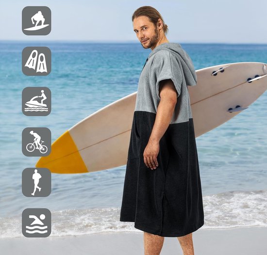 LYtech Poncho de surf, serviette de bain avec fermeture éclair à capuche, séchage rapide, en microfibre, serviette à langer pour homme et femme, serviette... Les boutons-pression latéraux le rendent incroyablement facile à porter et à ajuster, offrant un ajustement sûr et confortable. Que vous changiez de vêtements mouillés ou que vous vous prélassiez simplement au bord de la piscine, notre peignoir offre le mélange parfait de confort, de style et de praticité. Surf SUN CUBE Poncho De Surf Avec Capuche, Serviette De Changement En Microfibre Épaisse à Séchage Rapide Pour Surf Plage Natation Sports Extérieurs Hommes, Serviette Absorbante Portable Avec Poche, Noir Poncho De Bain Le matériau doux et doux for la peau assure un ajustement confortable, ce qui le rend idéal for un port toute la journée lors de vos sorties à la plage ou à la piscine., 5., Conception facile à porter avec boutons-pression latéraux : notre serviette à capuche est conçue dans un souci de commodité. Le poncho plage indispensable ! En microfibre super absorbante, il sèche vite et vous offre un changement discret à la plage ou à la piscine ==========Matière : POLYESTERProduit chimique hautement préoccupant : AucunCatégorie de produit : Serviette de bain/serviette de plage, 1., Confort à séchage rapide : découvrez un confort et une commodité inégalés avec nos ponchos de surf unisexes. Homelevel Poncho de surf, poncho de plage, poncho de bain, serviette de