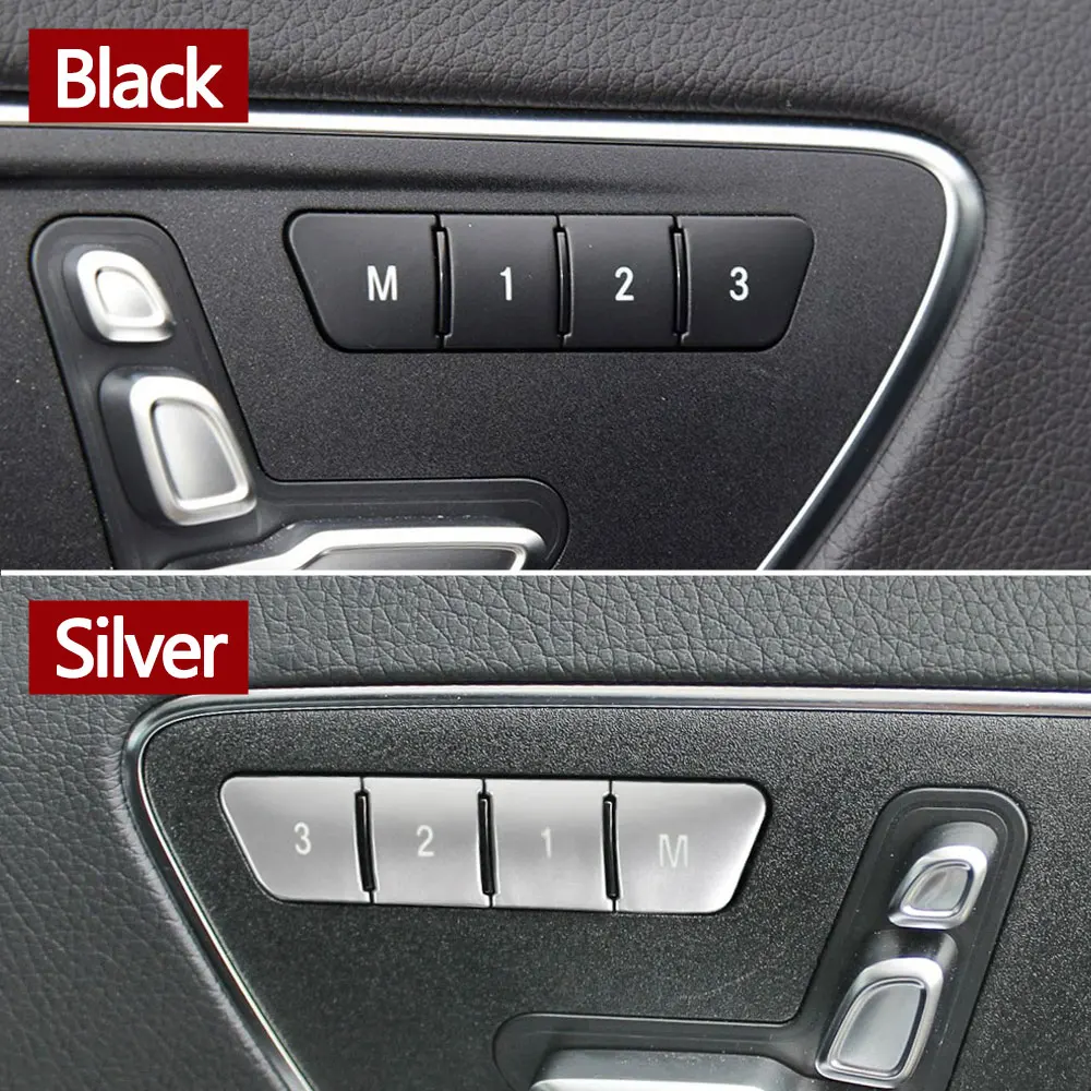Garniture de décoration de bouton de réglage de siège - AKOZON - Kia Protections Boutons Réglage Siège Argent APESER Lot De 6 Capuchons De Bouton De Réglage De Siège Compatibles Avec Mercedes Benz Et Bouchon De Valve Mercedes Bouton de poignée de réglage de siège, Interrupteur de réglage de siège... Autocollants de bouton de réglage de siège de porte Compatible avec Mercedes Classe ML W166 2012-2015 (Sauf ML250 ML300 ML320), Classe B W246 2012-2015, Classe C W204 2008-2015, Classe CLA W117 CLA260 2014-2015, Classe E W212 2010-2015 , Classe CLS W218 2012-2015, Classe GLK X204 2010-2015, Classe GL X166 2013-2015., Fabriqué en plastique ABS solide avec finition chromée mate, empêche la voiture des ongles, des rayures des clés, des rayures existantes. Lot de 6 capuchons de bouton de réglage de siège de porte compatibles avec Mercedes Classe ML W166/Classe B W246/Classe C W204. Lot de 6 capuchons de bouton... Remarque : Veuillez vous assurer que la forme du bouton de siège dans votre voiture d'origine correspond à l'image avant de commander. L'ensemble comprend 2x bouton de réglage de l'appui-tête, 2x bouton de réglage du dossier du siège, 2x bouton de réglage de la hauteur du siège, avec ruban adhésif double face.