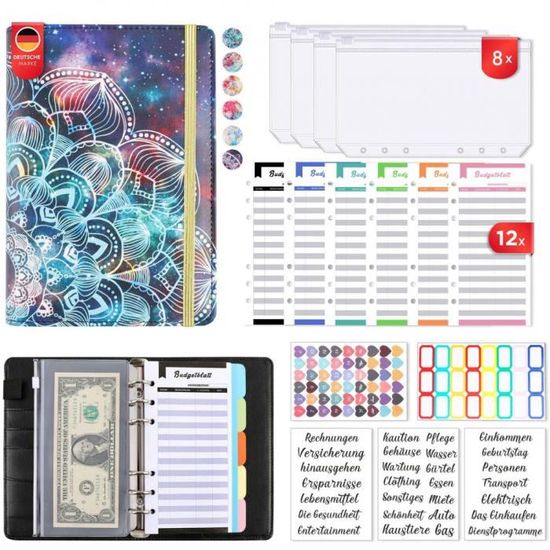 Classeur Budget Francais Carnet Budget Enveloppe Budget Planner TAOPE Accessoires De Classeur Budget A6, 6 Trous Dossiers En Budget Planner Francais Lot De 30 Feuilles De Budget A6 Pour La Budgétisation Que Classeur Budget Pochettes JIANTA Classeur à Anneaux A6 en Cuir PU - Planificateur Classeur Budget A6, Budget Planner avec 8 Épargne Défis Budget, 10... La protection par mot de passe protège le contenu, tandis que l'enregistrement clair des revenus et des dépenses aide à développer un style de consommation rationnel. Matériau de haute qualité : fabriqué en cuir synthétique de haute qualité, ce carnet de budget se caractérise par sa robustesse, sa résistance à l'eau et à l'huile, et son nettoyage facile. Les fentes et compartiments intégrés pour les cartes permettent de ranger les pièces d'identité, les cartes bancaires, les passeports et l'argent liquide. Nom : Budget Binder A6 à anneaux Fonction :Budget Binder avec 8 pochettes à anneaux Couleur : bleu Matériaux : cuir PU, métal, papier, plastique Contenu : 1 agenda budgétaire en cuir PU, 8 pochettes refermables, 2 feuilles d'autocollants, 3 jeux d'autocollants, 4 étiquettes colorées, 1 règle et 1 stylo. Conception portable : l'agenda à anneaux A6 mesure 19 × 13 cm, il est léger et portable, et se glisse facilement dans un sac à main, un sac à dos ou un sac à bandoulière. Que ce soit pour la gestion quotidienne de votre budget, la planification de vos économies, vos défis d'épargne ou vos comptes financiers, il vous aide à organiser efficacement vos fonds et à enregistrer clairement la situation de vos revenus et de vos dépenses. Il est idéal comme cadeau pour vos amis, vos collègues et votre famille. Déf budget en franças, déf budget à mprmer format A6, déf...