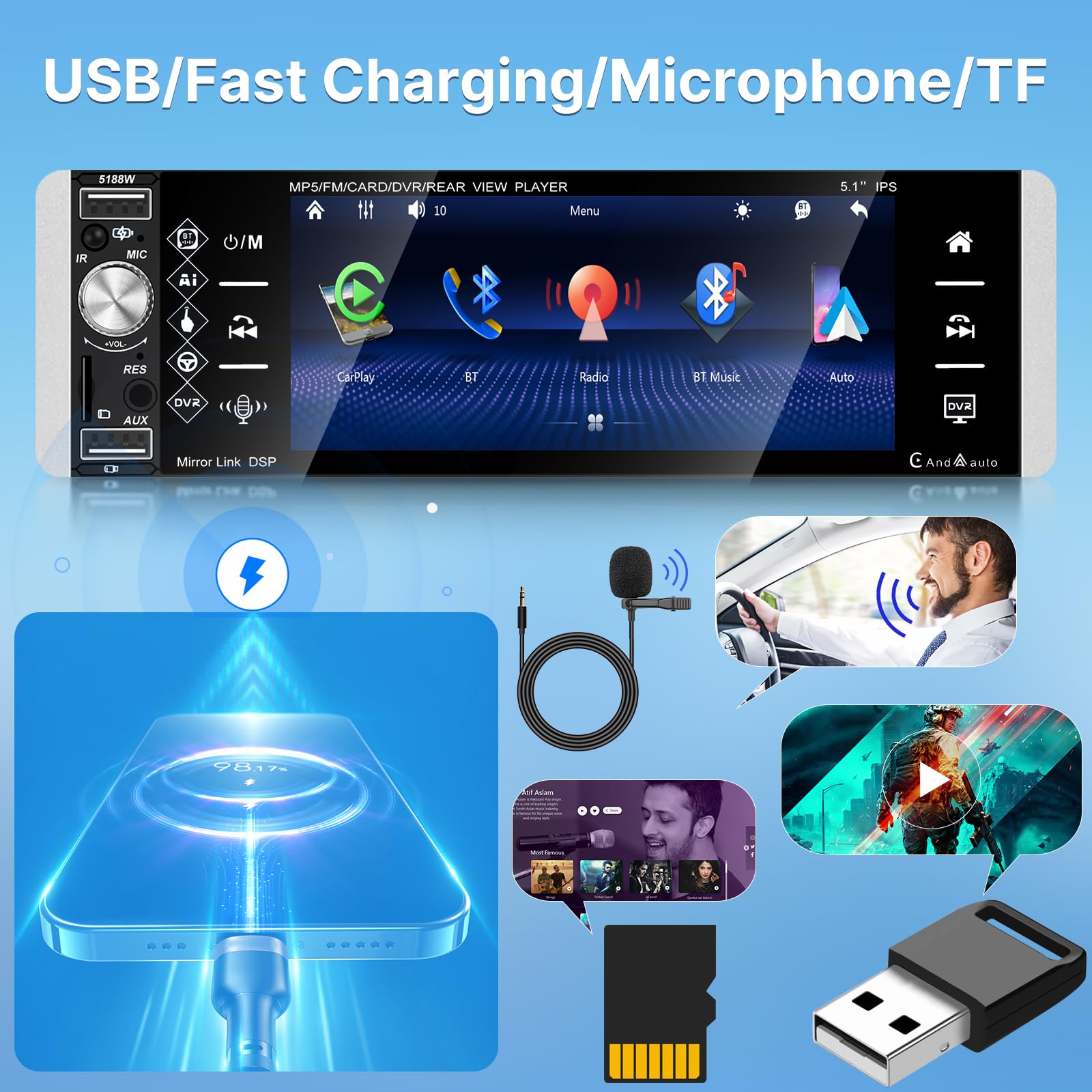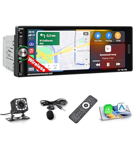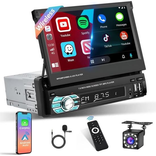 Car Play Sans Fil Autoradio 1 Din Avec Carplay Sans Fil Et Android Auto - Autoradio Carplay à écran Tactile IPS De 5,1 Pouces Avec EQ, Mirror Link, Radio FM/AM/RDS, Bluetooth, Port TF/AUX/USB, SWC + Caméra Radio Voiture Mirror Link USB-C Dab-Dab+ Autoradio 1 Din Carplay Sans Fil Android Auto Wireless Eq Fm Am Rds, Poste Radio Système de navigation intelligent pour voiture : autoradio 1 DIN avec CarPlay et Android Auto. ★ Double connectivité intelligente - Prise en charge native pour CarPlay sans fil et Android Auto, mise en miroir transparente du smartphone via câble USB, accès instantané à l'assistant ★ Caméra de recul de sécurité - Passez automatiquement en mode inverse avec entrée caméra de... Idéal pour moderniser votre tableau de bord et profiter d’une expérience multimédia fluide dans votre voiture. Compatible avec la plupart des véhicules 12V-24V 【CarPlay & Android Auto】Connectez facilement votre iPhone ou smartphone Android via CarPlay ou Android Auto pour accéder à la navigation, aux appels, messages et musique en toute sécurité. 【Autoradio 1 DIN avec Écran Tactile】Profitez d’un autoradio MRSXWPY 1 DIN avec grand écran tactile HD 6,36, affichage clair et réactif. Compatible CarPlay et Android Auto filaire/sans fil, offrant un contrôle intuitif depuis l’écran 【Navigation GPS Intégrée & Contrôle Vocal】Navigation GPS rapide avec affichage en temps réel des itinéraires, cartes précises et guidage vocal. Fonction de contrôle vocal pour changer de musique, lancer un appel ou démarrer un itinéraire sans quitter la route des yeux Avec des fonctionnalités telles que le lien miroir, la caméra de recul, et le contrôle au volant, cet autoradio est conçu pour améliorer votre confort et votre sécurité sur la route. Pour l'installation, certaines voitures peuvent nécessiter un kit de câblage et un kit de montage supplémentaires