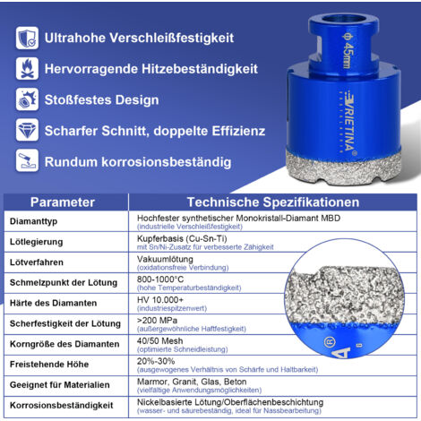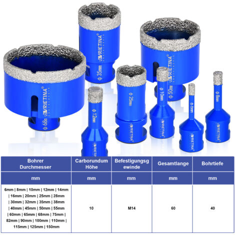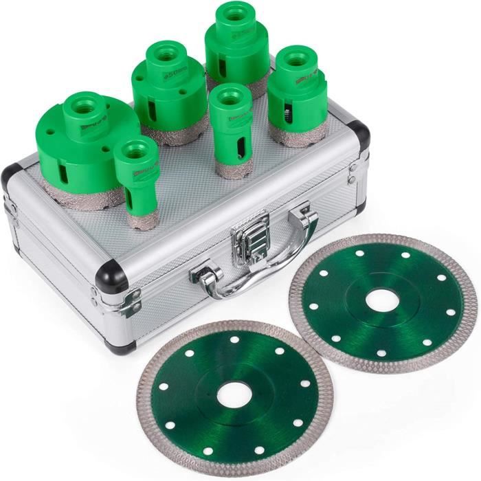 Taille:1 pièce 68 mm, hauteur du diamant 10 mm, longueur totale 60 mm, filetage M14 du foret pour carrelage Outil Maçonnerie Diamant Pour Meuleuse Forets Diamant, Forets à Carrelage, 2PCS 6mm/8mm, Trépans De Forage Avec Filetage M14, Brasé Trépan Carrelage Forets Carrelage Diamant 20/35/50/68mm Matière première de qualité supérieure:Grâce à la technologie brasée sous vide, améliore les performances et la durée de vie. FAN-forets diamantés Foret Brasé Sous Vide Forets Diamant Forets Trépans En Granit Scie Cloche... Perçage rapide et lisse:La forme spéciale de la dent à rainure en U et la conception d'élimination des copeaux du coupe-carreaux créent une netteté élevée, vous pouvez percer en douceur sans bords cassés Le corps en acier de haute qualité aide à être plus efficace et durable, pas facile à déformer