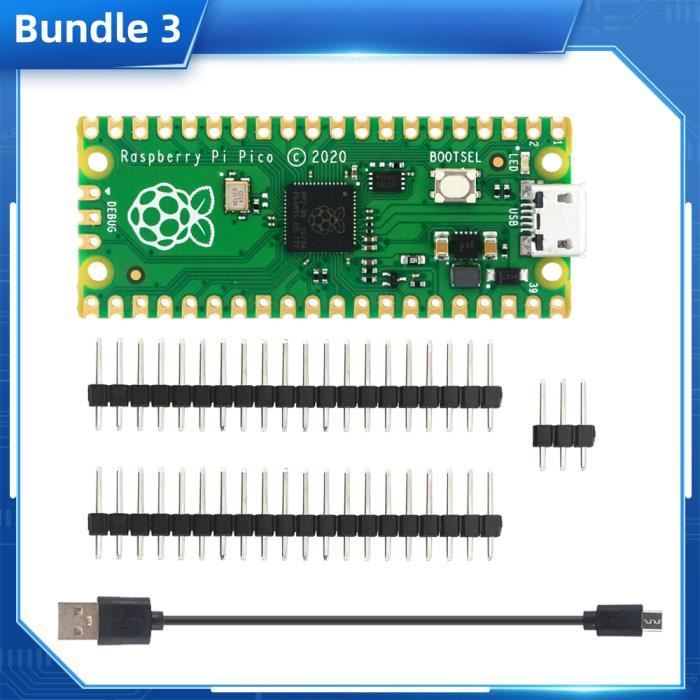 Carte Microcontrôleur Raspberry Pi 4Pcs Pour Carte De Microcontrôleur Studio Raspberry Pi Pico Pour Raspberry Pi Rp2040 Dual Core Arm Cortex M0 Processeur Carte Mère La carte d'affichage Pico Video4 basée sur Raspberry Pi RP2040 dispose... Zéro wh - Kit 4 - Carte Raspberry Pi Ontariw D'origine, Processeur 29 broches GPIO multifonctions (20 peuvent être dirigées par des broches en rangée, le reste ne peut être mené que par soudage). Puce de microcontrôleur RP2040 conçue par Raspberry Pi Au Royaume-Uni · Processeur Arm Cortex M0 double cœur, horloge flexible jusqu'à 133 MHz · 264 Ko de SRAM... 2 × SPI, 2 × I2C, 2 × UART, 4 × ADC 12 bits, 16 × canaux PWM contrôlables. Mode veille et veille à faible consommation. Programmation par glisser-déposer utilisant le stockage de masse via USB. 264 Ko de SRAM et 2 Mo de mémoire Flash intégrée ; connecteur USB-C, le maintient à jour, plus facile à utiliser.