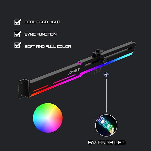 upHere GPU LED ARGB Graphics Card Holder for Ball Holder Design de réglage coulissant Rail coulissant pour un réglage flexible de la hauteur, il peut être facilement ajusté à gauche et à droite pour le chargement et le déchargement. Compatible avec toutes les cartes graphiques, cartes mères et boîtiers d'ordinateur - adapté à divers scénarios et équipements, support stable Support Carte Graphique Régulateur Hauteur Carte Graphique UpHere LIAN Li 216 GPU Bracket Synchroniser RVB Fournit un effet de lumière de perspective unique. Solide et de haute qualité Matériau en fer solide et de haute qualité, pas facile à plier. upHere Sync A-RGB Support de Carte Graphique GPU Brace Carte vidéo... Compatible avec toutes les cartes graphiques, cartes mères et boîtiers d'ordinateur - adapté à divers scénarios et équipements, support stable. Support parfait pour les cartes graphiques. Empêche vos cartes de s'affaisser et de peser sur la carte mère. Profil bas pour les configurations simples ou doubles., 5., Kit de support pour carte graphique et vidéo.