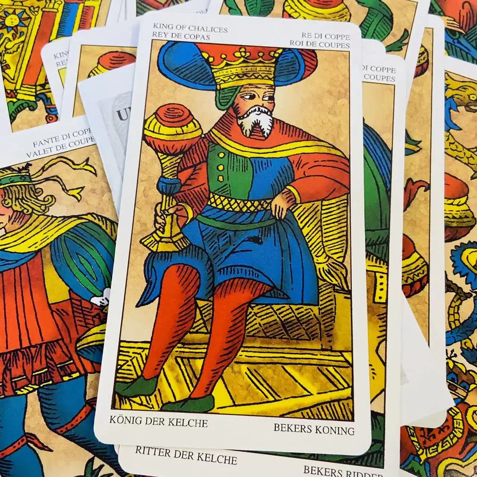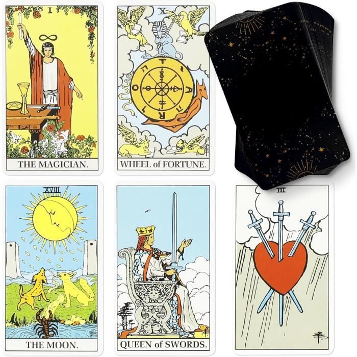 Bon design : chaque carte de ce jeu est un véritable trésor de connaissances. Chaque carte de tarot pour débutants est expliquée en détail dans le mode d'emploi. Jeu De Tarot Jeu De Cartes De Tarot, 78 Cartes De Tarot Originales Jeu De Fortune, Cartes De Tarot Taille Jeu Tarot Golden Eye 78 Cartes Tarot de Marseille - Claude Burdel - Jeu de 78 cartes divinatoires... Le produit est en anglais Cartes Golden de haute qualité : les cartes ont une surface lisse, des couleurs vives, une taille standard, des bords nets et sont fabriquées à partir de papier résistant. Avec ce jeu de tarot, vous n'aurez plus besoin de perdre votre temps à chercher des explications sur Internet ou à feuilleter le manuel. Un tarot holographique aussi riche en contenu sera certainement très apprécié Ces jeux de cartes de tarot peuvent être utilisés pendant longtemps sans s'abîmer. Cela offre une sensation plus agréable au toucher et lors du mélange. Portable : la taille compacte des cartes rend ce jeu de tarot idéal pour voyager et pour une utilisation dans n'importe quel environnement Jeu de tarot 78+2 cartes : ce luxueux jeu de tarot comprend 78+2 cartes de haute qualité avec des motifs dorés élaborés, ainsi qu'un manuel illustré de 36 pages. Le Tarot, un jeu traditionnel des soirées en famille ou entre amis. Tout pour le jeu vous offre un choix de cartes écologique, pas chers ou super qualité, à vous de choisir les cartes de Tarot que vous préférez Elles conviennent donc à tous les lecteurs qui recherchent des cartes de tarot haut de gamme et raffinées Divertissement intéressant : utiliser le tarot pour la divination est non seulement amusant, mais aussi instructif. Matériau PVC : les cartes de tarot sont fabriquées à partir de PVC, ce qui les rend imperméables. Ancien Tarot de Marseille astrologique doré (or) carte oracle zodiaque planètes
