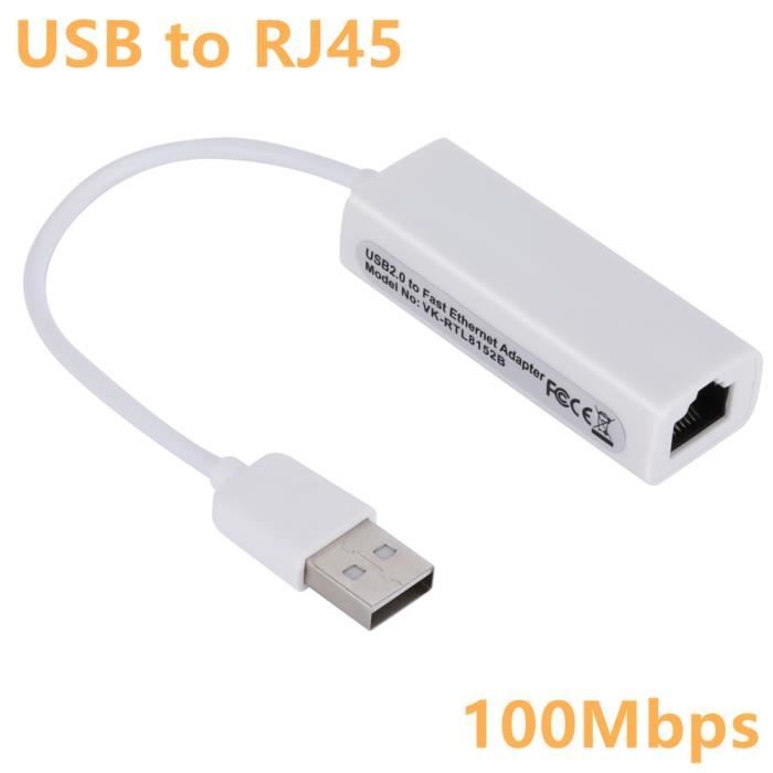 Cartes réseau,Carte réseau Rtl8152 Usb 2.0 vers Rj45, adaptateur Lan, 10-100 mb-s, pour tablette Adaptateur USB 2.0 vers RJ45 Vous permet de relier facilement votre ordinateur à un réseau Ethernet avec l'adaptateur USB Ethernet. Petit et léger, il se... Accessoire Réseau Plug And Play Windows IOS Cartes Réseau,Carte Réseau Rtl8152 Usb 2.0 Vers Rj45, Adaptateur Lan Adaptateur Réseau Filaire Pour PC Portable Petit et léger, il se connecte au port USB 2.0 de votre ordinateur et fournit un connecteur RJ-45 gérant les performances 10/100BASE-T (100M). Compatible avec... ompatible avec iOS et Windows, ADAUSBRJ45 , ADAUSBRJ45 Description du produit Adaptateur USB 2., 0 vers RJ45 - Permet de relier facilement votre ordinateur à un réseau Ethernet Petit et léger - Fournit un connecteur RJ-45 gérant les performances 10/100 BASE-T (capacité de transfert jusqu'à 100M) - Compatible avec iOS et Windows - Installation automatique du driver - Coul.
