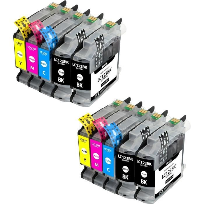 Cartouches Compatibles LC-123XL Ensemble De 4 Cartouches D'encre Brother LC123 Compatible Pour Brother Cartouches Haute Capacité Disponibles en différentes couleurs (noir, cyan, magenta, jaune), ces cartouches vous permettent de recharger votre imprimante Brother et de continuer à imprimer sans interruption. N'hésitez pas à consulter notre sélection de cartouches d'encre Brother LC 123 et à profiter de nos prix compétitifs pour vous équiper plus sereinement 10 Cartouches compatibles BROTHER LC123XL - 4 Noir + 2 Cyan + 2 Magen MFC-J285DW / MFC-J875DW / MFC-J970DW Offre spéciale Imprimante Laser Couleur Jhaan LC123XL LC123 Cartouches D'encre Compatibles Avec Brother LC 123 Brother MFC-J4410DW MFC-J470DW MFC-J6520DW... Rendement de page élevé : 3000 pages avec les cartouches d'encre Brother LC123XL noir XL, 1500 pages avec les cartouches d'encre Brother LC123XL couleur XL à 5 % de couverture A4 LC123XL Lot de 10 cartouches d'encre de rechange pour Brother LC-123XL Noir et couleur Pour Brother LC 123 XL LC-123XL Cartouches d'encre LC 123 XL compatibles avec Brother MFC-J245 / MFC-J4310DW / MFC-J4410DW MFC-J4510DW / MFC-J4610DW / MFC-J470DW MFC-J4710DW / MFC-J475DW / MFC-J650DW MFC-J6520DW / MFC-J6720DW / MFC-J6920DW MFC-J870DW. LC 123 XL Lot de 10 NINETEC