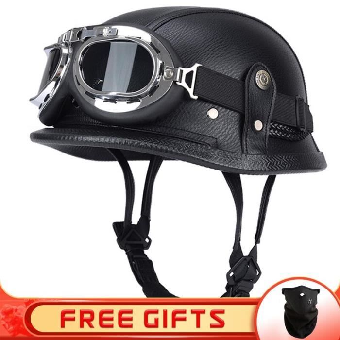Spécifications du produit : Matériau : ABS + rembourrage EPS Doublure : Doublure polaire Poids : 950 g Certification : ECE Genre : Homme/Femme Âge : Adulte Tailles : M Tour de tête : 57-58 cm L Tour de tête : 59-60 cm Tour de tête XL : 61-62 cm Tour de tête XXL : 63-64 cm Articles expédiés : 1 casque de moto Remarque : en raison des variations de couleur à l'écran, le produit réel peut différer de l'image. Boucle à dégagement rapide : Grâce à sa conception unique, ce demi-casque rétro en cuir est incroyablement facile à enfiler et à retirer, d'une seule main. Lavable à tout moment, elle conserve sa fraîcheur. C'est un accessoire élégant et un cadeau idéal pour vos proches., Le choix idéal ! Casque Rétro Ouvert Léopard Floral Vintage Moto 3/4 Demi-Casque Avec Pare-Soleil ECE/ECE Service client: Pour toute question, n'hésitez pas à nous contacter ! Ce casque classique est indémodable ! Il pèse ~1,5 kg (ABS EPS), est homologué DOT/ECE pour la sécurité. La doublure est confortable, amovible et lavable. Le Bluetooth permet d'appeler et écouter... Non seulement elles bloquent efficacement l'éblouissement, mais elles ajoutent également une touche d'élégance au look rétro, créant une conduite unique et captivante. Imaginez à quel point vous serez cool et élégant sur la route avec ce casque. Doublure amovible pour un confort accru : La doublure amovible est un atout précieux pour ce casque de scooter trois-quarts. Casque Cuir Rétro Casque Moto Vintage, Rétro, Biker Homologué Casque Confort Doublure Amovible Cela garantit son homologation dans la circulation routière en Europe et aux États-Unis, ce qui en fait un outil indispensable pour l'exploration en plein air Sa matière douce épouse les courbes de la tête, le rendant confortable pour les longs trajets et apportant une touche de confort vintage.