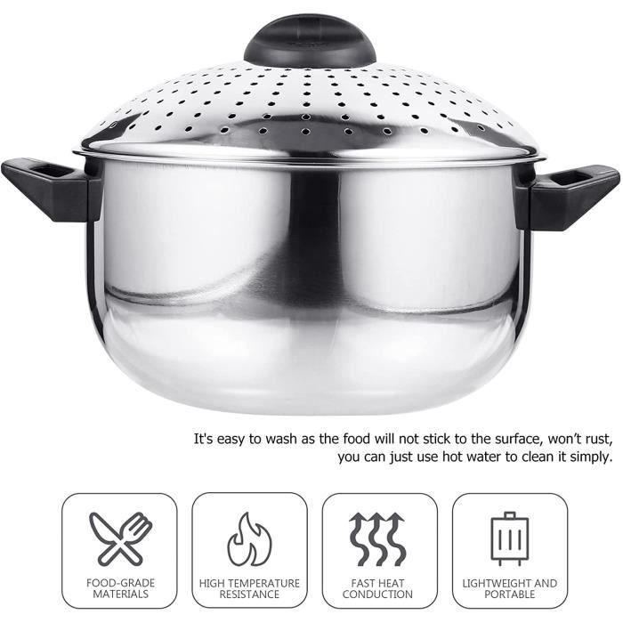 Contenu de la livraison : 1 casserole avec passoire., 1 panier., 1 couvercle. AUN Casserole de - Casserole en Acier Inoxydable Casserole De Cuisine... Matériaux sélectionnés : ce produit est fabriqué en acier inoxydable 201 épaissi, qui ne se déforme pas et ne rouille pas facilement, est très robuste et durable. Diamètre intérieur du couvercle : 49,5 cm. Marmite Avec Passoire 50 Cm Casserole De Pâtes Professionnelle Avec Passoire Ustensile Cuisine Professionnel Inox Veuillez vérifier la taille avant l'achat si elle correspond à vos besoins., 3., Veuillez la laver avec une brosse non abrasive et de l'eau savonneuse douce. Capacité de la casserole : 50 L/52,8 Qt Capacité de la cuisson : 40 l/42,26 Qt Hauteur du pot : 50 cm. Autres accessoires pour le montage., Remarques : 1., Les aliments sur les images ne sont pas inclus., 2., En raison de sa grande taille, veuillez être prudent lorsque vous l'utilisez sur la cuisinière. mais permet également un filtrage rapide et empêche les aliments de tomber, ce qui est très pratique. Design bien pensé : le couvercle permet de conserver la chaleur, le goût et les saveurs, de sorte que les aliments conservent leur humidité et leur goût, créant des repas délicieux et savoureux. Diamètre extérieur du couvercle : 51,5 cm. Dimensions du colis : 56 x 53,5 x 53,5 cm. Marmite à asperges - 4,1 l - Casserole pour la cuisson des asperges ou des spaghettis - En acier Diamètre de la casserole avec poignées : 57 cm. Grâce à la poignée ronde, le couvercle peut être accroché directement aux poignées de la casserole, ce qui permet d'économiser de l'espace et facilite l'accès. Grande compatibilité : ce produit est compatible avec les cuisinières à gaz, les cuisinières électriques, les cuisinières à induction et les flammes nues, ce qui rend la cuisson encore plus pratique.