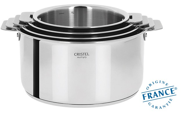Casserole Inox Série De 3 Casseroles SOLSTICE + Poignée Athermique Amovible CUISINOX Cristel Mutine Série de 3 casseroles fabriquée en France en acier inoxydable avec une poignée amovible noir de la gamme Mutine de Cristel. Diamètre de 16, 18 et 20 cm avec fond thermo-diffuseur triple couches. Compatible induction et four. Livraison rapide Casserole Manche Amovible Professionnelle: Queue & Poignée, inox Pratique, le système de poignée amovible permet de transformer votre casserole inox en faitout en remplaçant la poignée par des anses. Série de 3 casseroles amovibles Mutine Poignée noire Cristel... Matière : Inox - Couleur : Argent - Longueur : 38 cm - Largeur : 32 cm - Compatible Lave-vaisselle Le concept amovible permet un empilage parfait des casseroles et faitouts Cristel pour un gain de place appréciable dans les placards comme dans le lave-vaisselle. Grâce à l'efficacité de leur fond thermo-diffuseur Cristel, compatible induction, les casseroles Mutine Amovible sont à l'aise dans toutes cuisines et seront des alliées précieuses pour toutes vos préparations. Indispensables en cuisine, les casseroles Mutine existent en 4 tailles : 14, 16, 18 et 20 cm.
